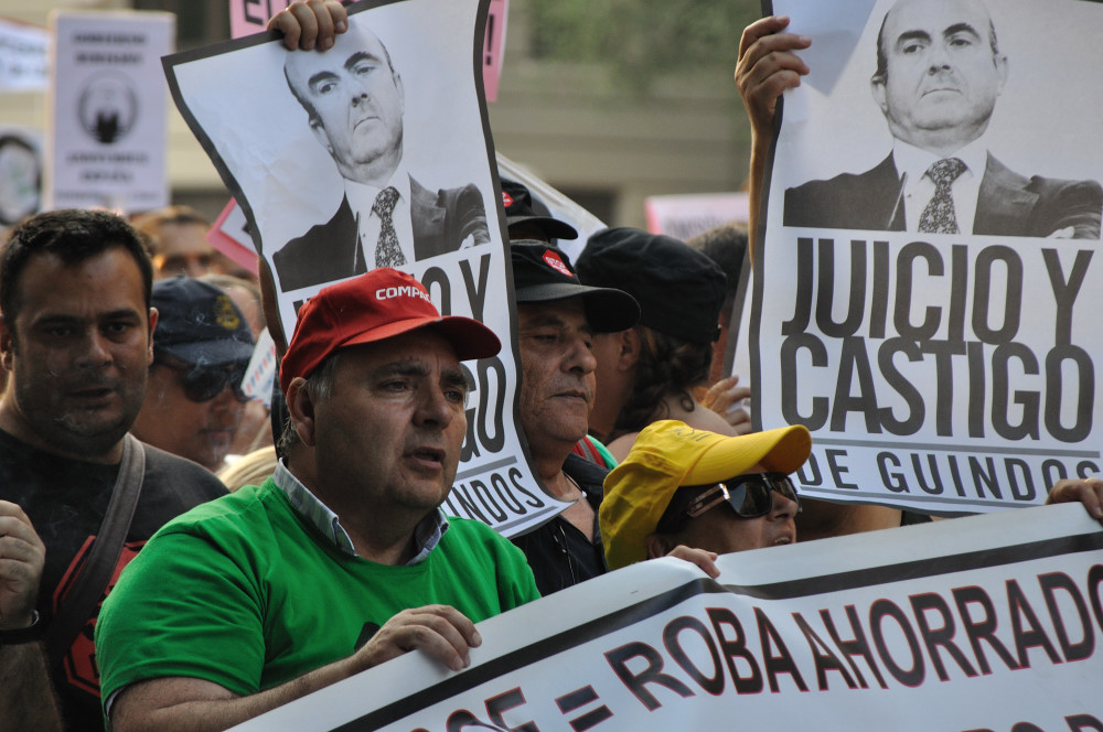 También el Ministro de Economía, Luis de Guindos era uno de los elegidos para ilustrar la cartelería de la manifestación.