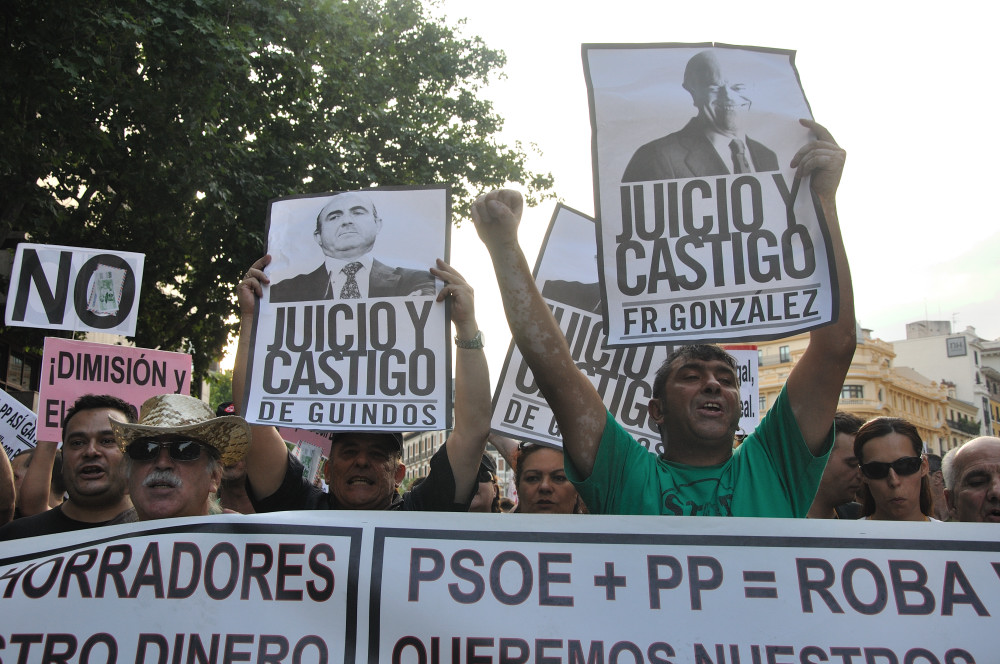 Los manifestantes claman contra la "mafia" del Gobierno. También Jorge Vestrynge entre ellos en esta foto.