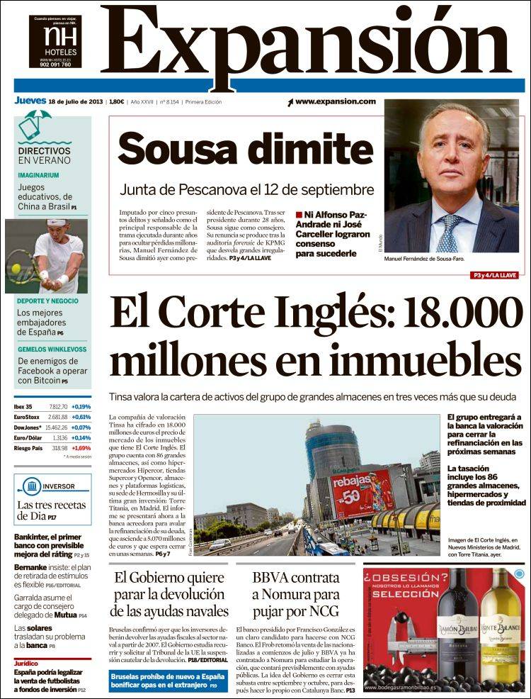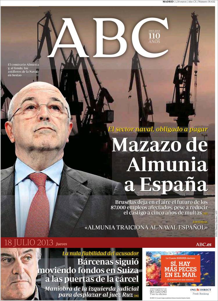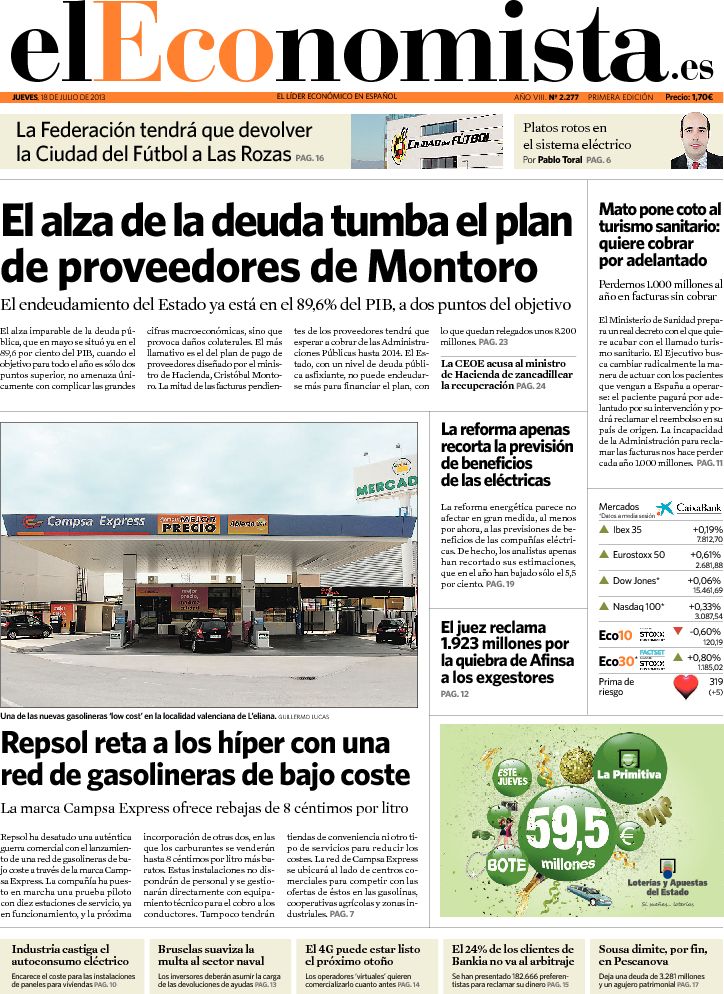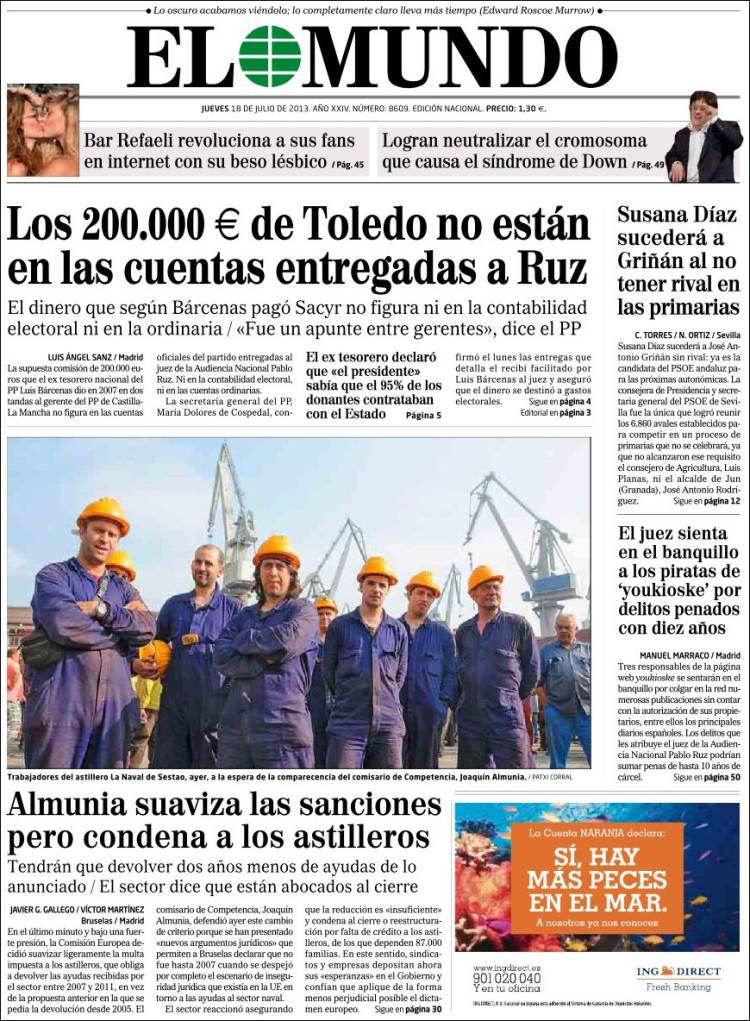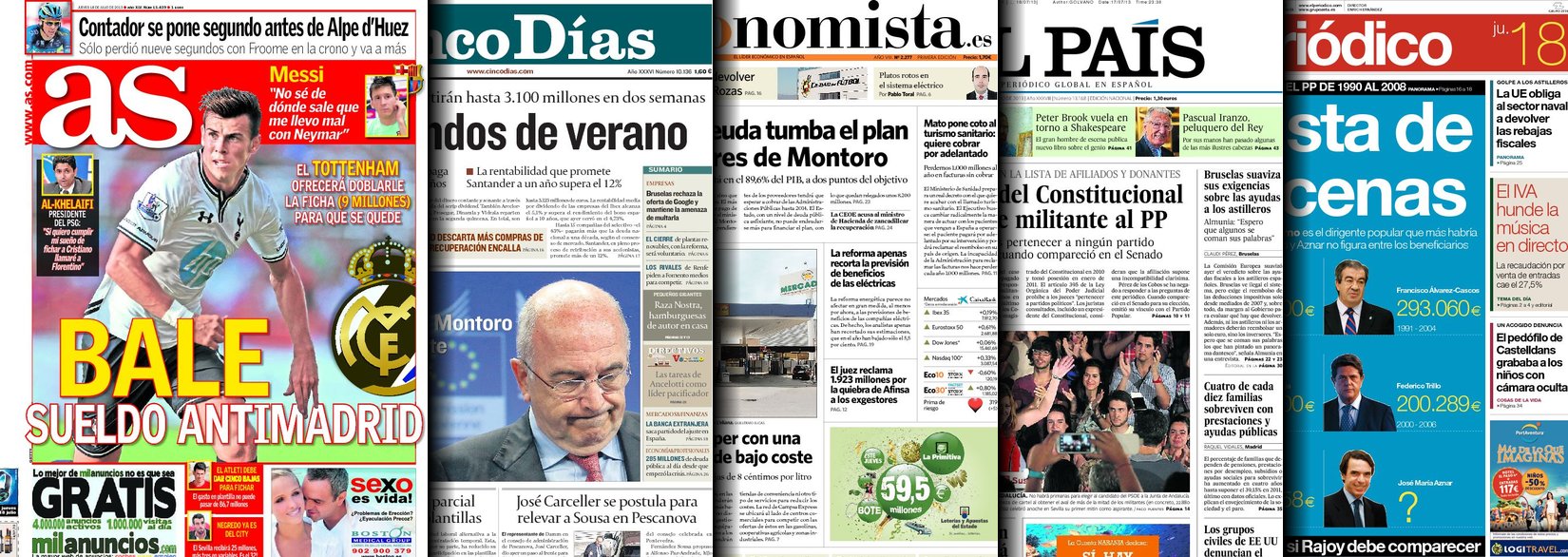 ortadas de los diarios El Mundo, El País, ABC, La Razón, La Vanguardia, El Periódico, Cinco Días, El Economista, Expansión, Marca, As, Mundo Deportivo y Sport.