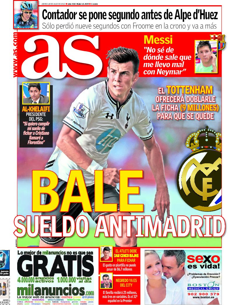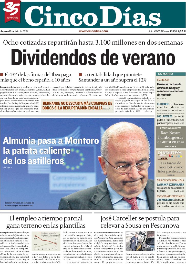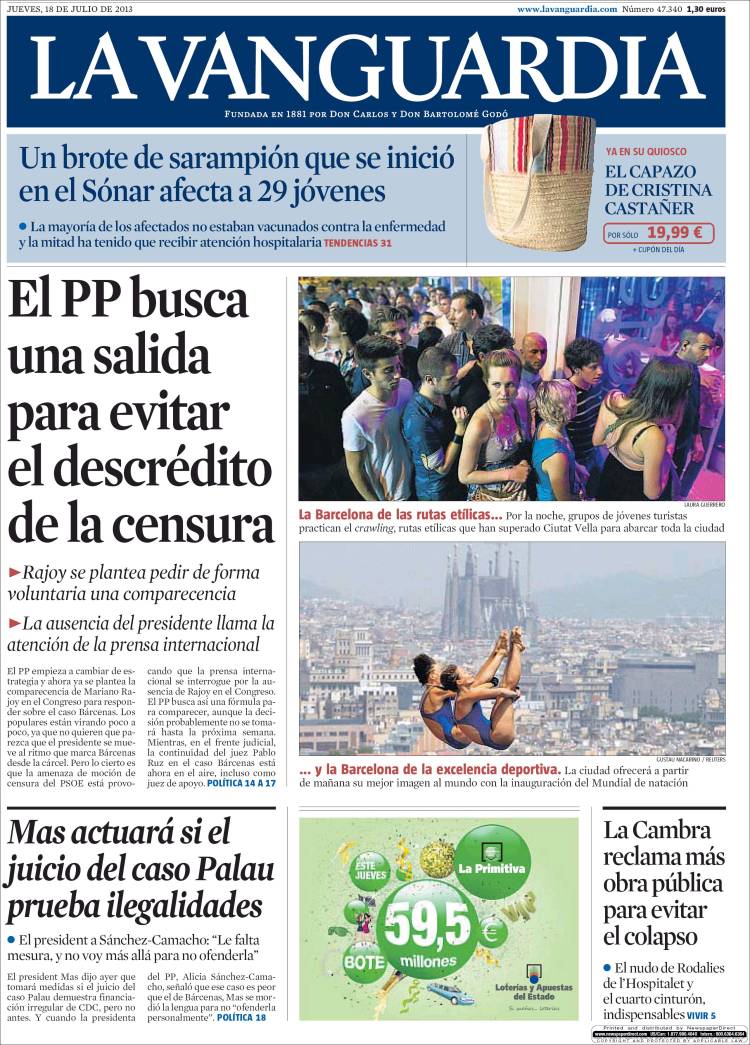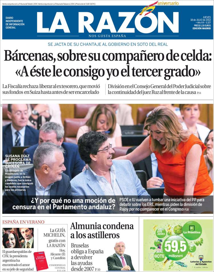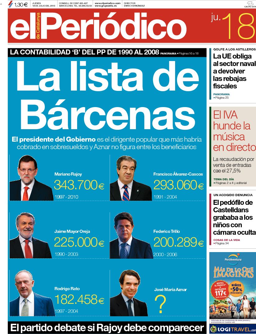 ortadas de los diarios El Mundo, El País, ABC, La Razón, La Vanguardia, El Periódico, Cinco Días, El Economista, Expansión, Marca, As, Mundo Deportivo y Sport.