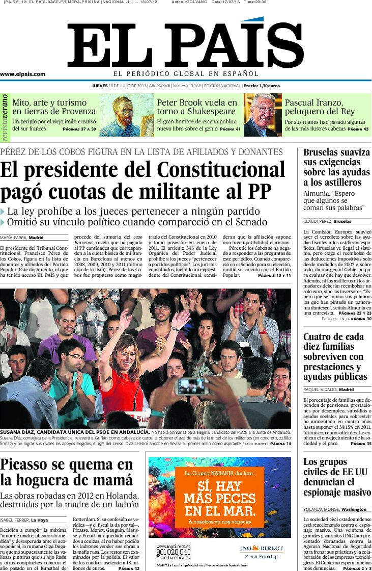 "El presidente del Constitucional pagó cuotas de militante al PP"