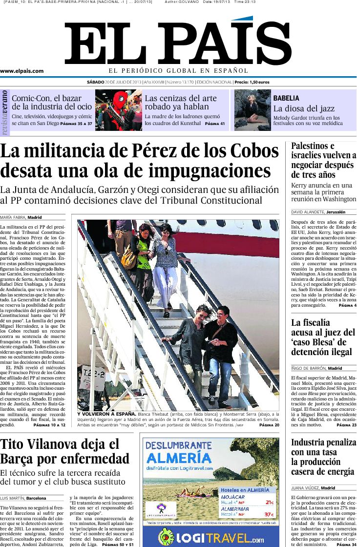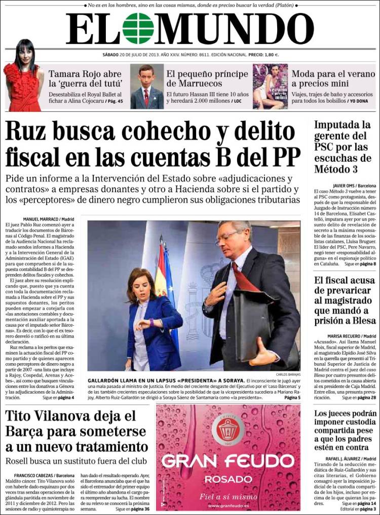 Devastación, cenizas y montes arrasados: así queda el país tras los incendios Paula Gil Los restaurantes exclusivos en los que se reunía la trama Koldo: este es el precio del jamón y las gambas Paco Cobos | Pablo Pardo 0 comentarios VerOcultar todos los comentarios Secciones Portada Opinión España Andalucía Madrid Canarias Valencia Internacional Defensa Corazón Viajar y Comer Deportes Sucesos Cultura Libros Cine Series Tecnociencia Salud Vídeos Fotos Canales Servicios Me lo compro Yo quiero uno Tráfico Precio gasolineras Radares El Tiempo Gestiona tu patrimonio Participación Móviles Boletines RSS Versión accesible Últimas noticias Archivo Hemeroteca Personajes Lugares Empresas Organismos Temas Eventos LD Redes Facebook X Instagram YouTube WhatsApp Telegram