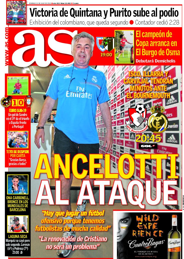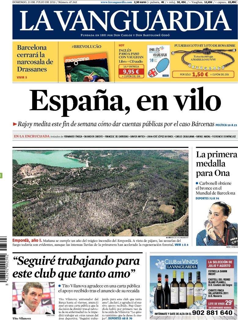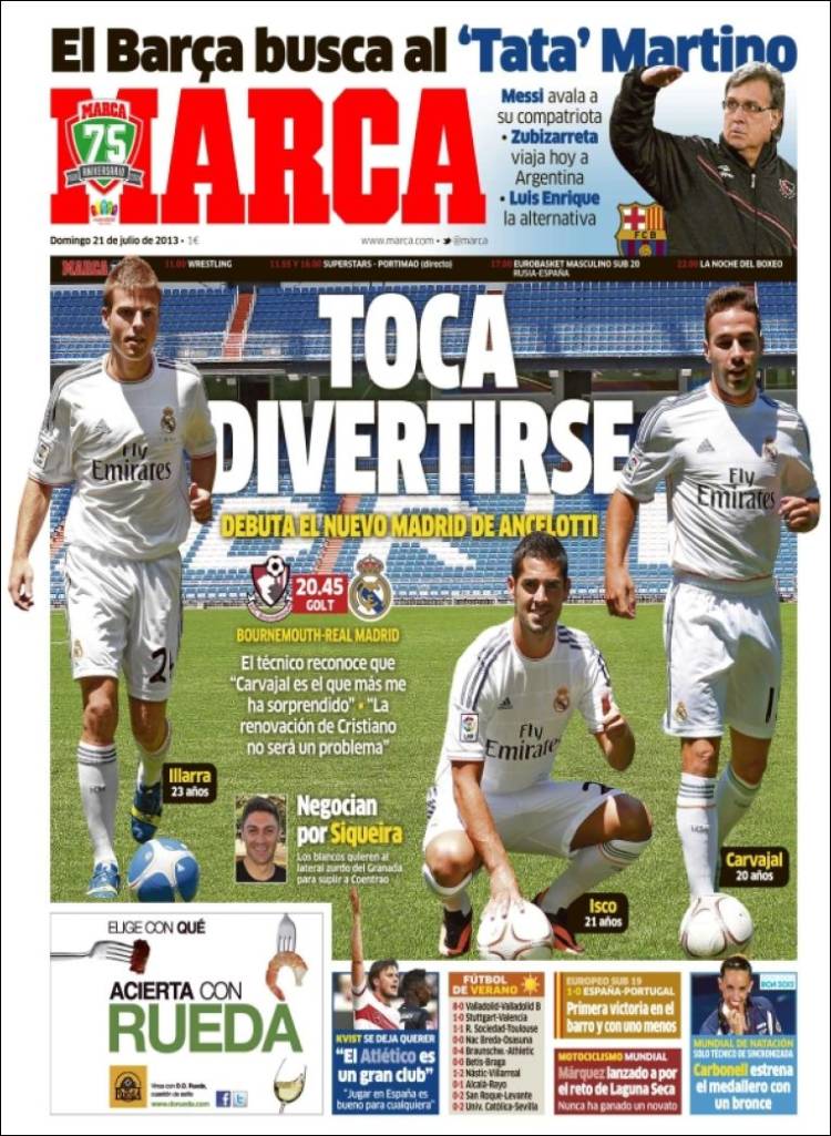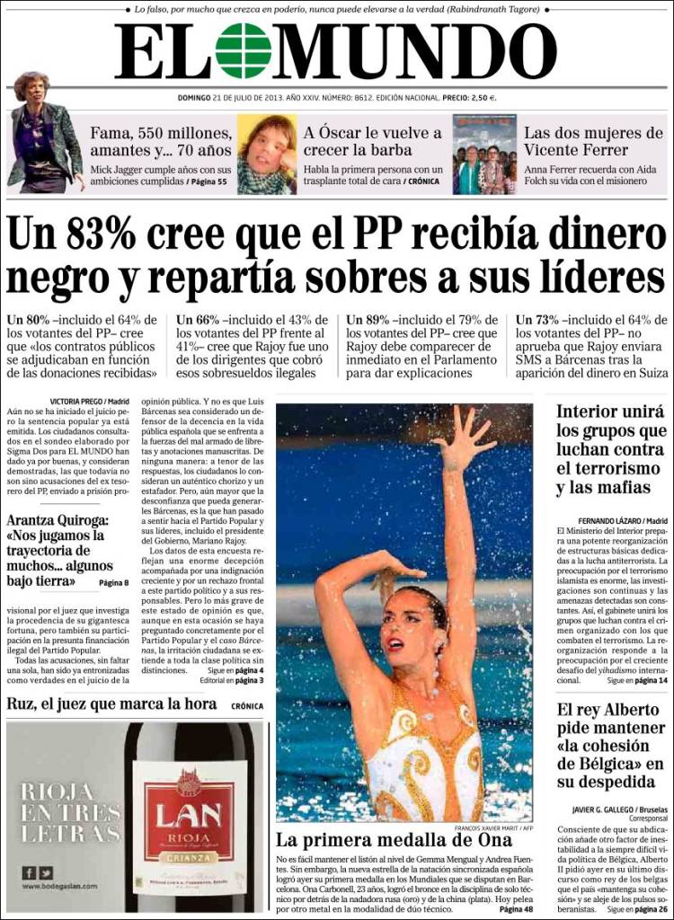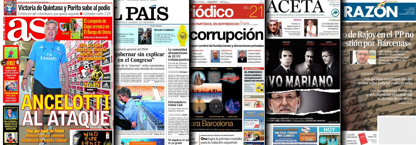 Portadas de los diarios El País, El Mundo, La Gaceta, ABC, La Razón, As, Marca, El Periódico y La Vanguardia.