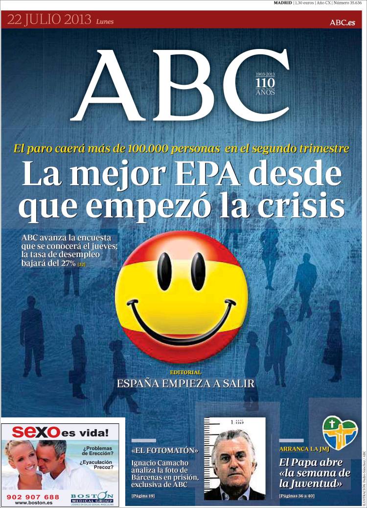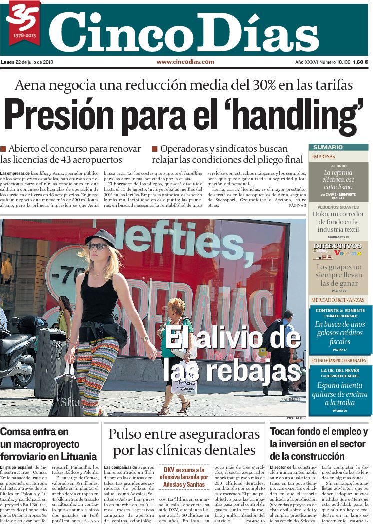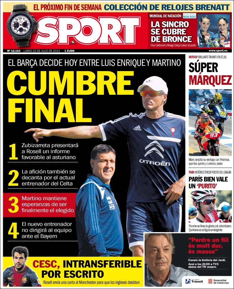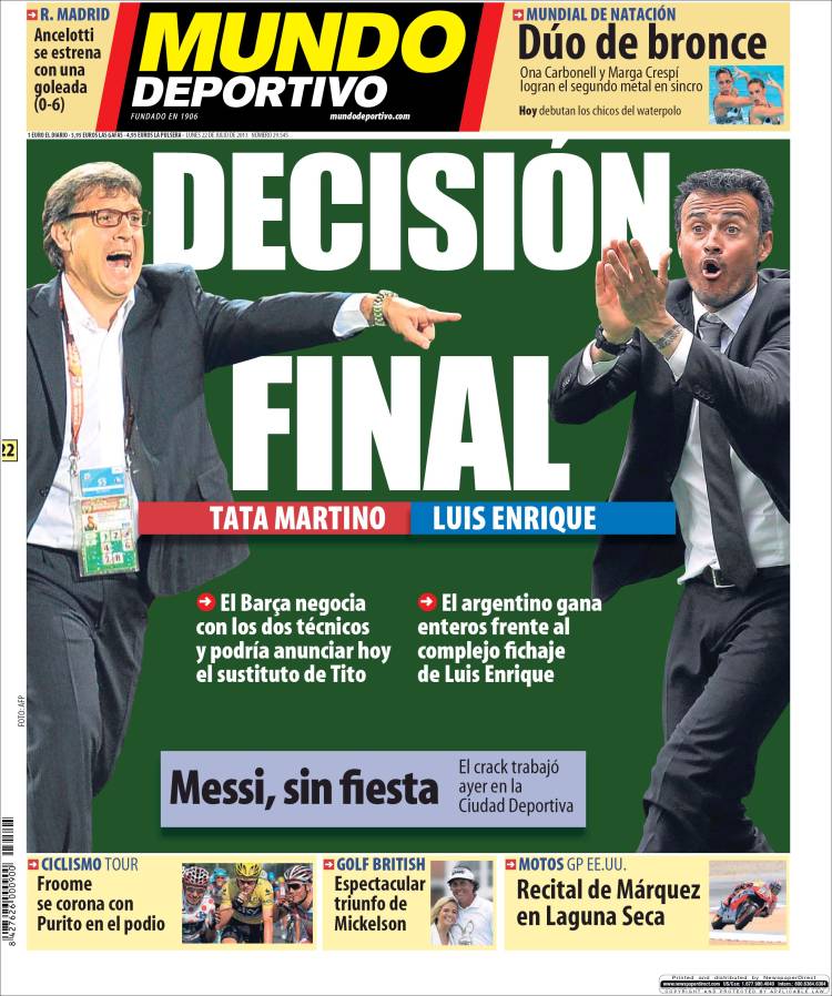 Portadas de los diarios El Mundo, El País, ABC, La Razón, La Vanguardia, La Gaceta, El Periódico, Cinco Días, El Economista, Expansión, Marca, As, Mundo Deportivo y Sport.