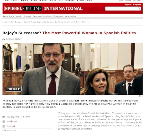 Uno de los semanarios más influyentes en Alemania, Der Spiegel, elogia la figura de la vicepresidenta, recalcando su enorme capacidad de trabajo, su tenacidad y dando a entender que la vicepresidenta está suficientemente cualificada para suceder a Rajoy.