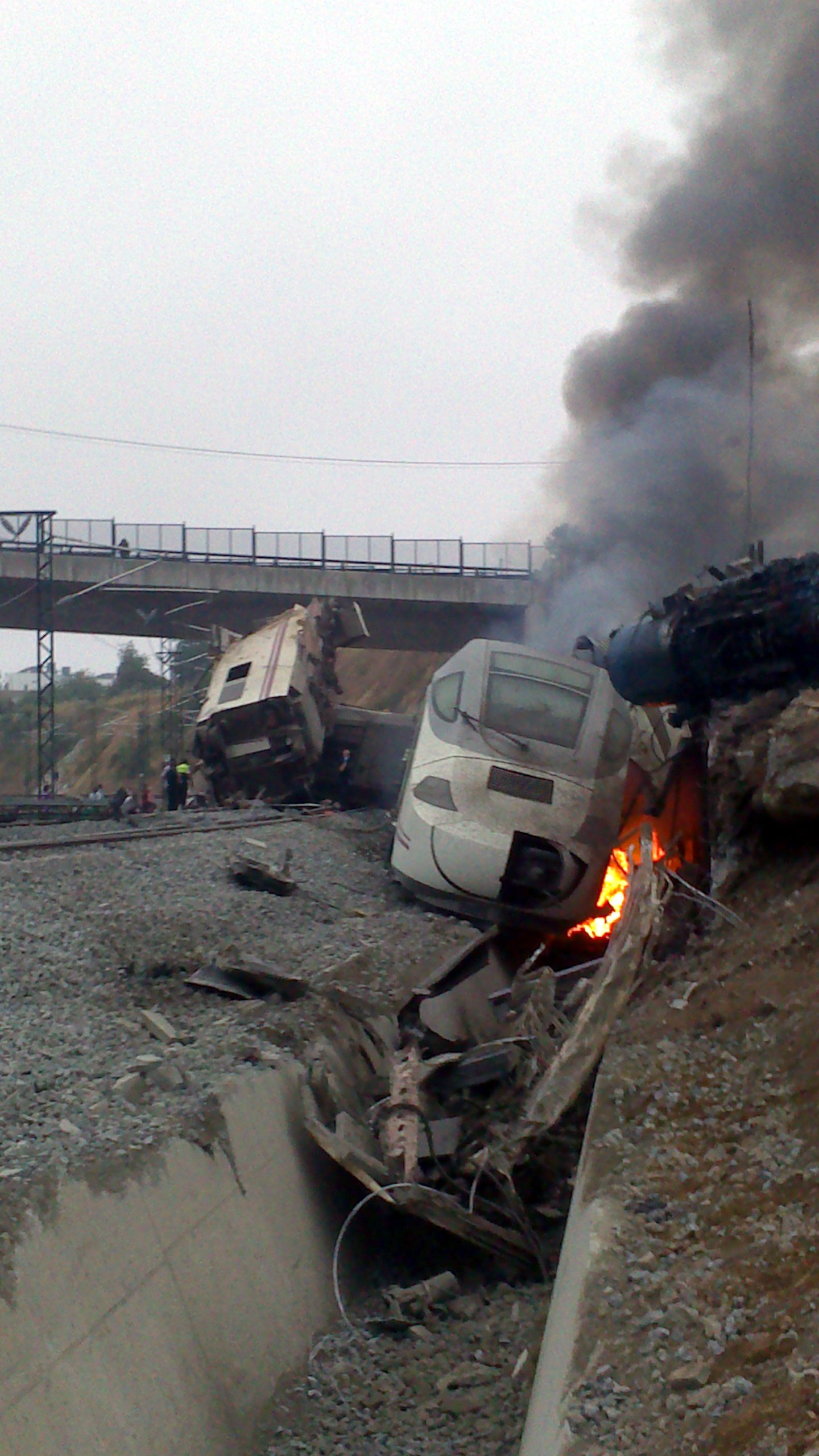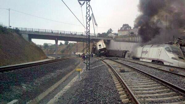 En la víspera del 25 de julio, fiesta nacional y local, un tren Alvia ha descarrilado en las afueras de Santiago de Compostela, dejando muertos y decenas de heridos.