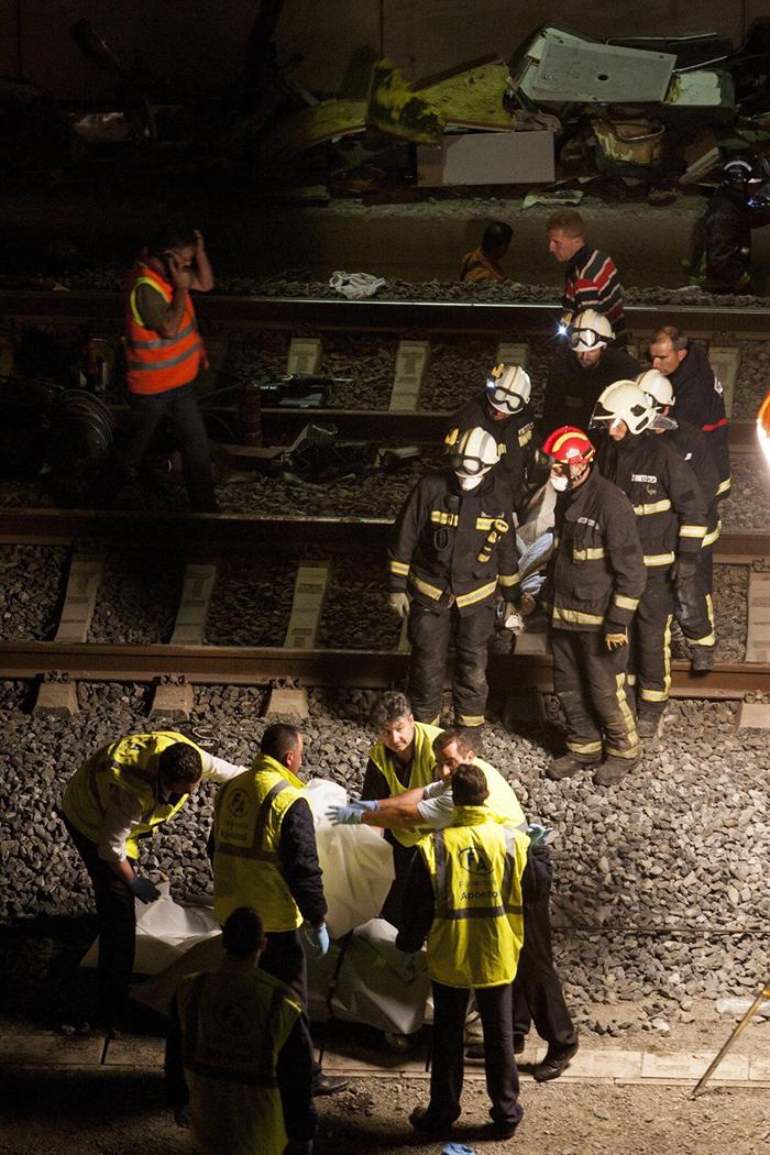 Los equipos de emergencia han colocado temporalmente a las víctimas mortales junto al tren siniestrado.