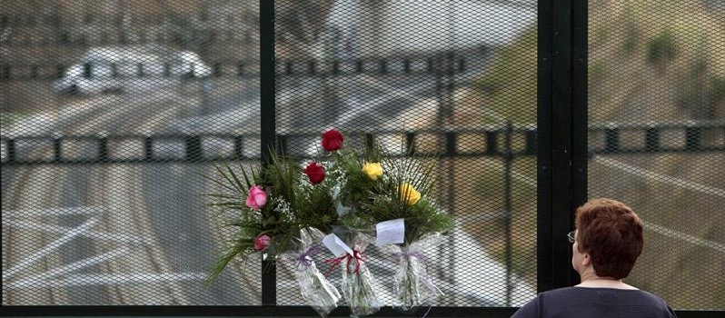 Flores en recuerdo de las víctimas en un puente próximo al lugar del accidente.