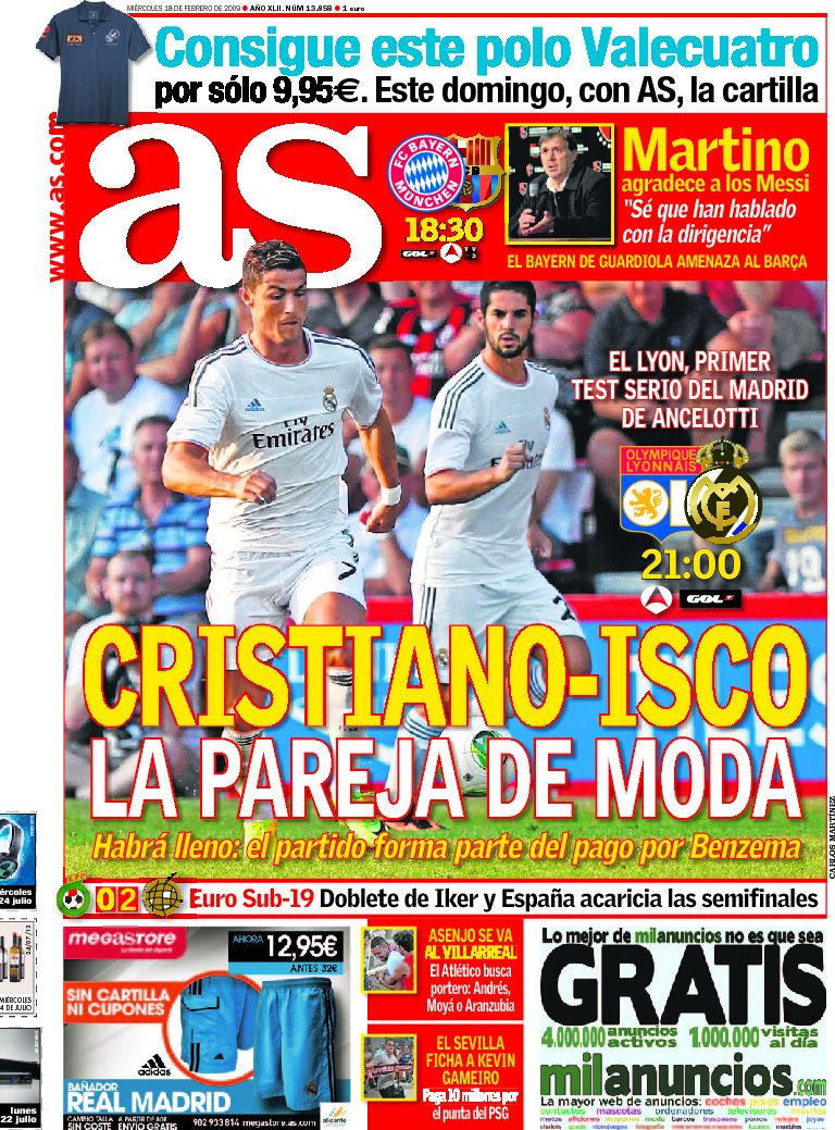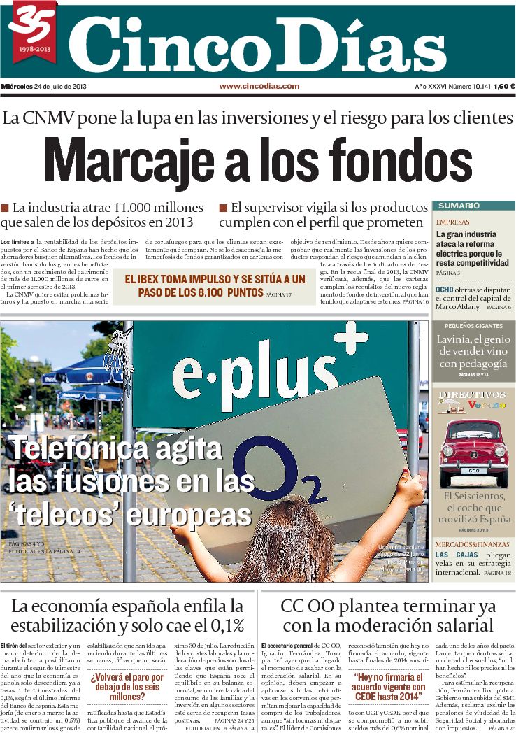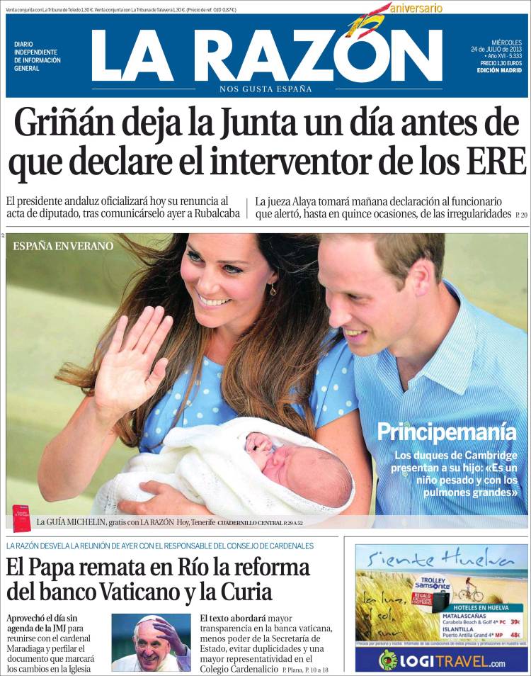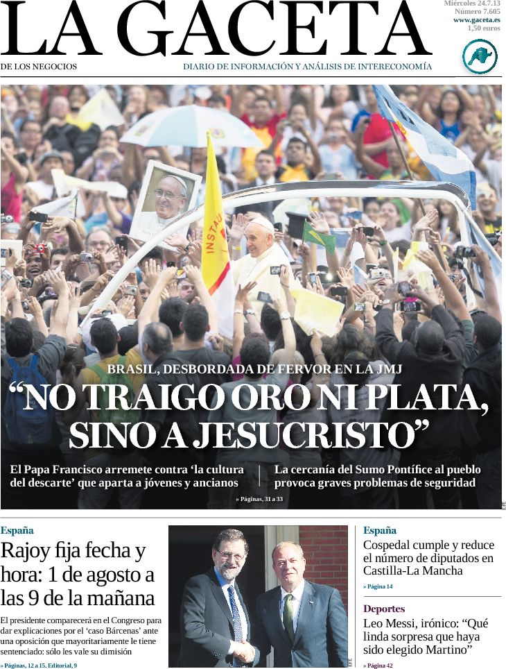 Portadas de los diarios El Mundo, El País, ABC, La Razón, La Vanguardia, La Gaceta, El Periódico, Cinco Días, El Economista, Expansión, Marca, As, Mundo Deportivo y Sport.