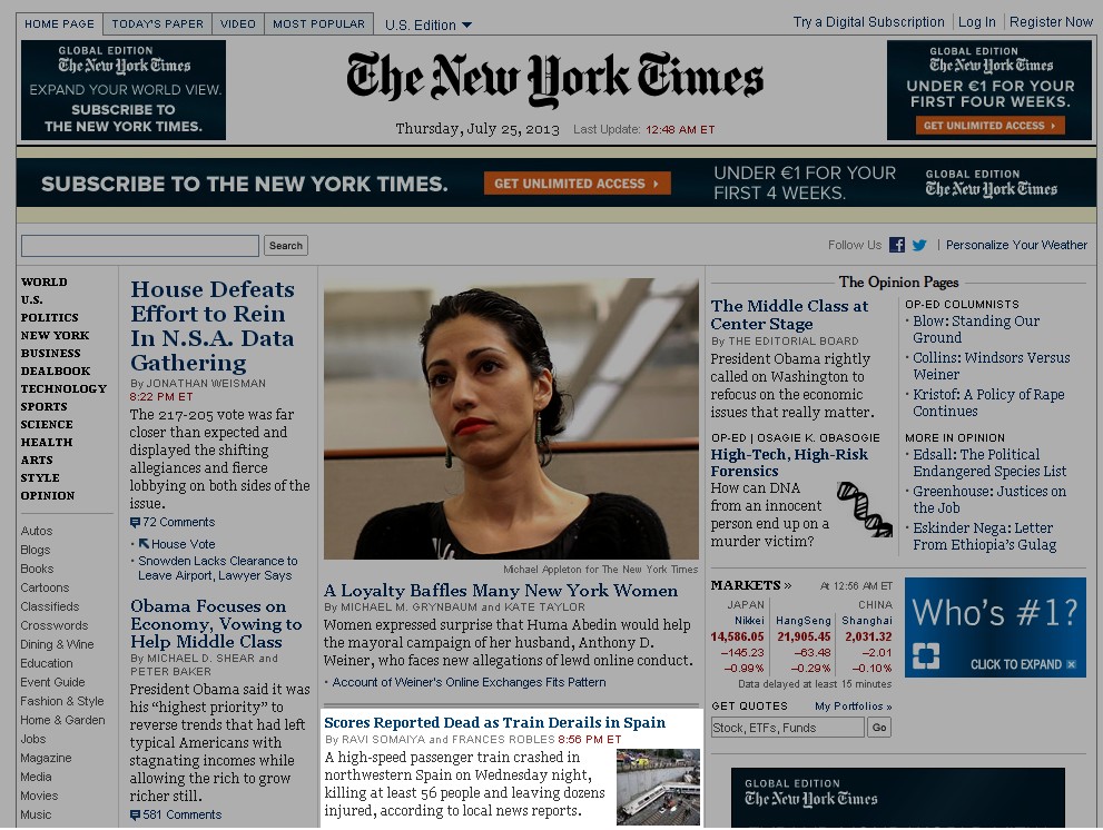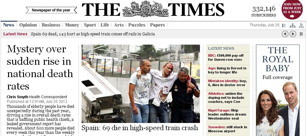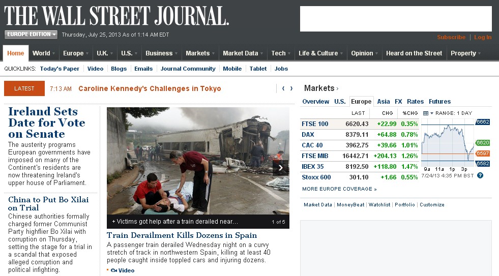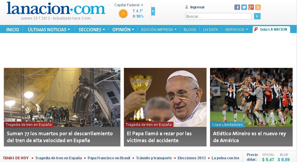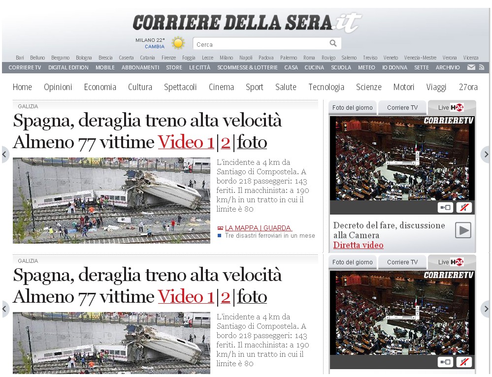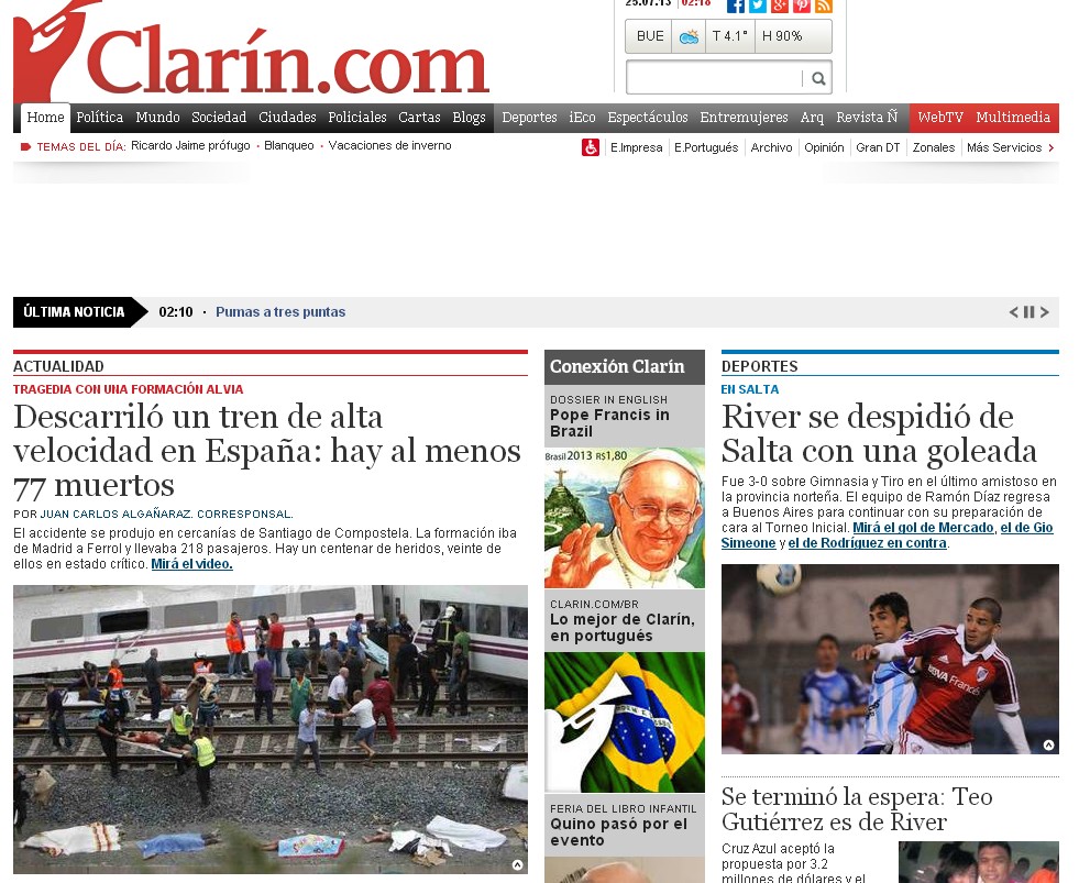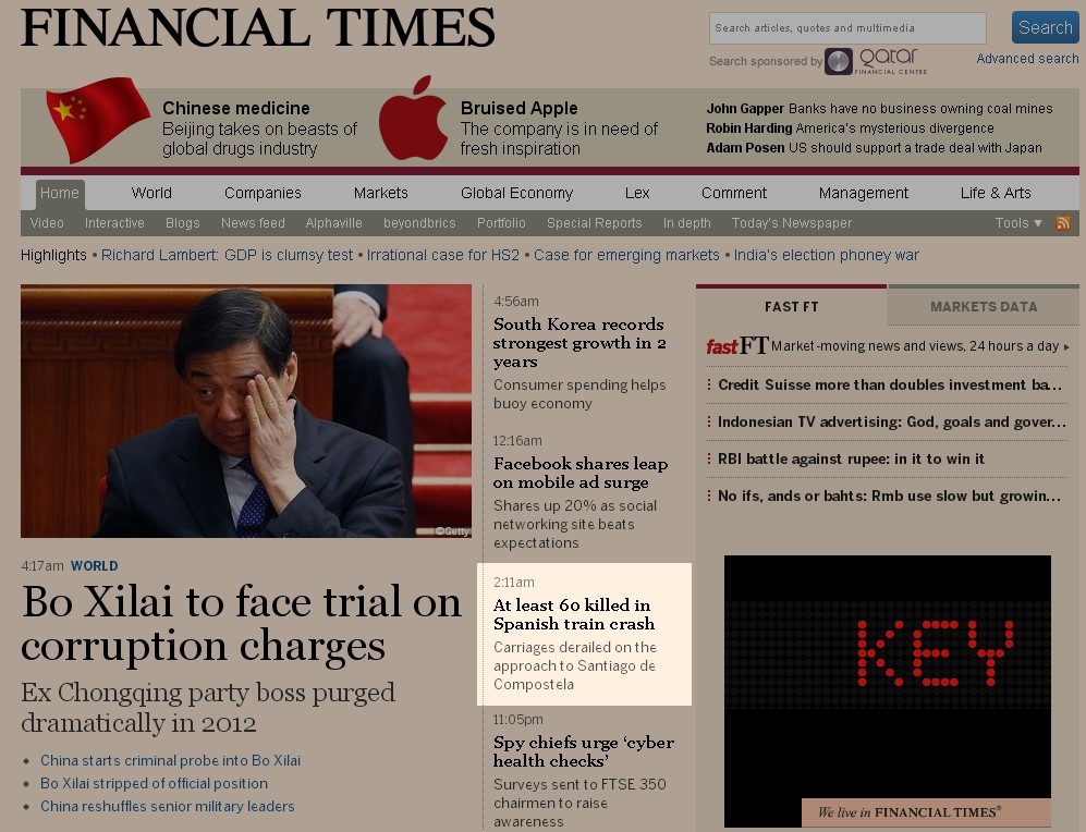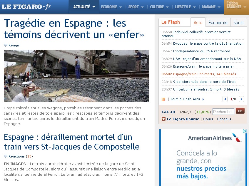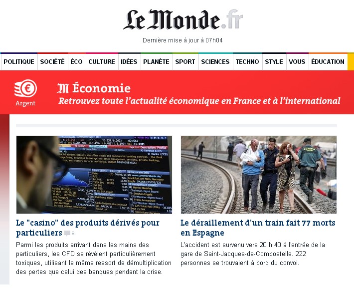 Las portadas de los periódicos internacionales recogen este jueves la tragedia vivida en Santiago, donde descarriló un tren Alvia dejando cerca de 80 fallecidos.
