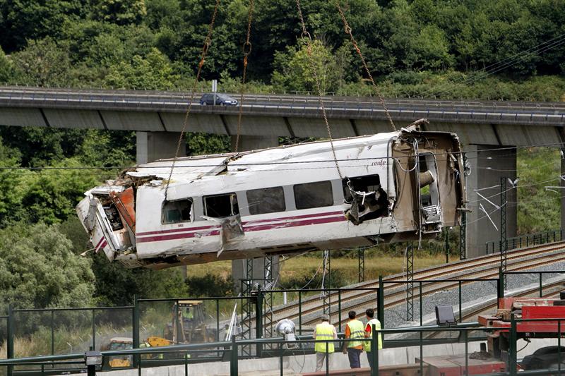 Los vagones del tren siniestrado en Santiago de Compostela que ha causado hasta el momento 80 muertos y más de 170 heridos han estado siendo retirados esta tarde con grúa.