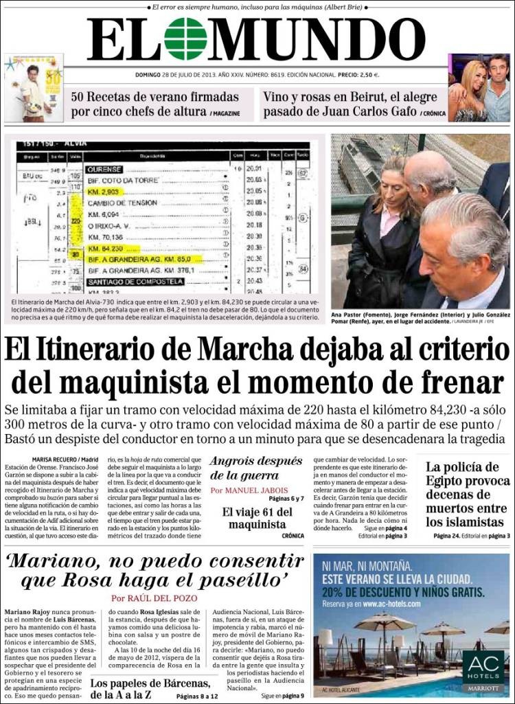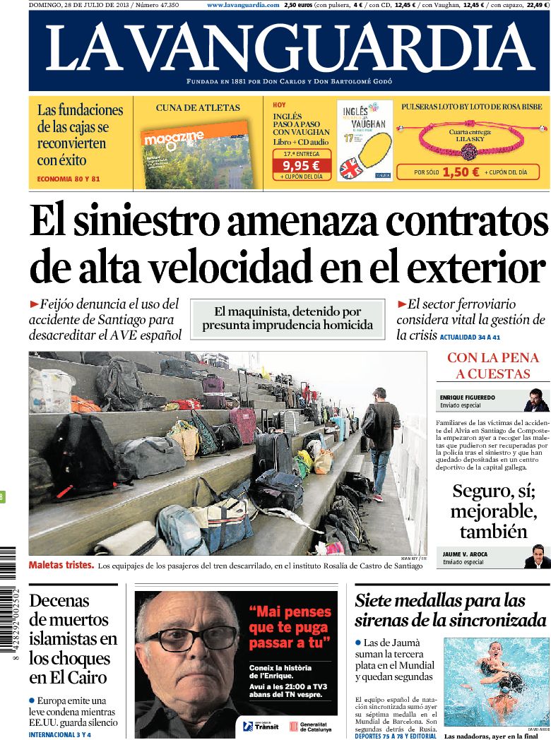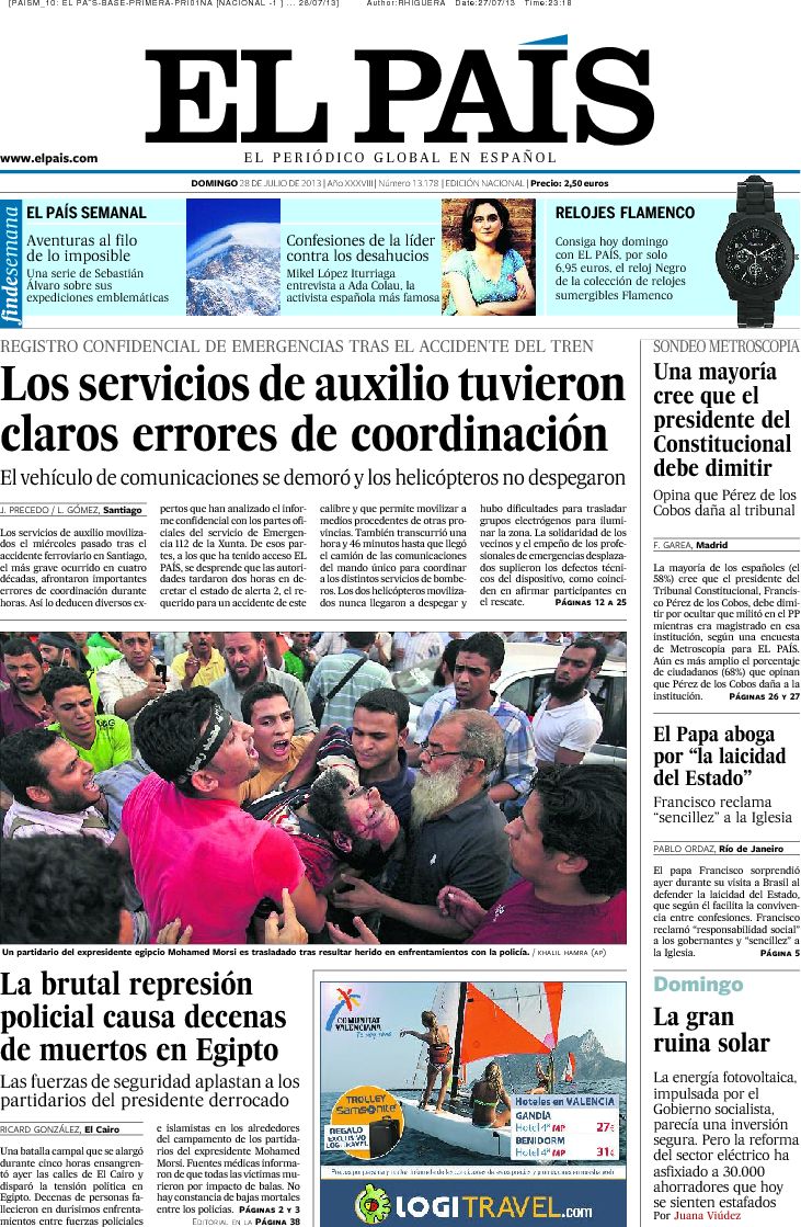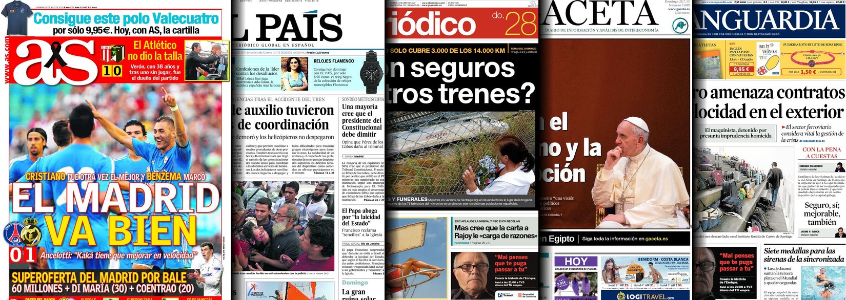 Portadas de los diarios El País, La Gaceta, As, El Periódico y La Vanguardia.