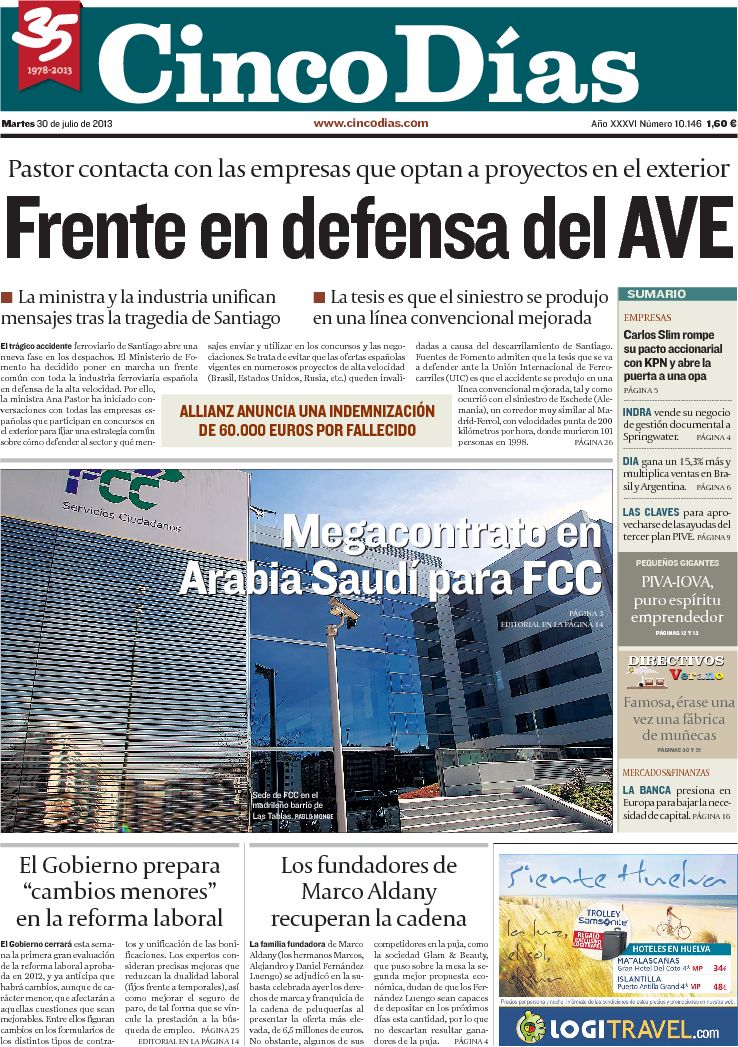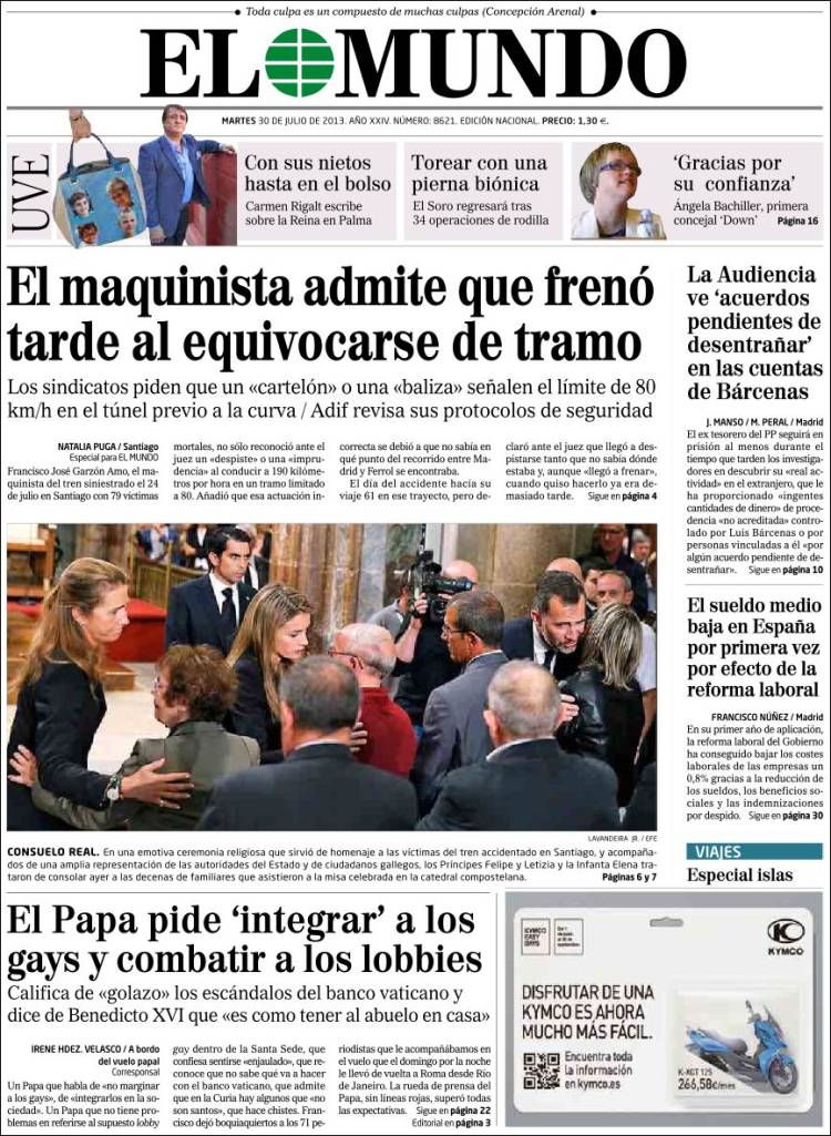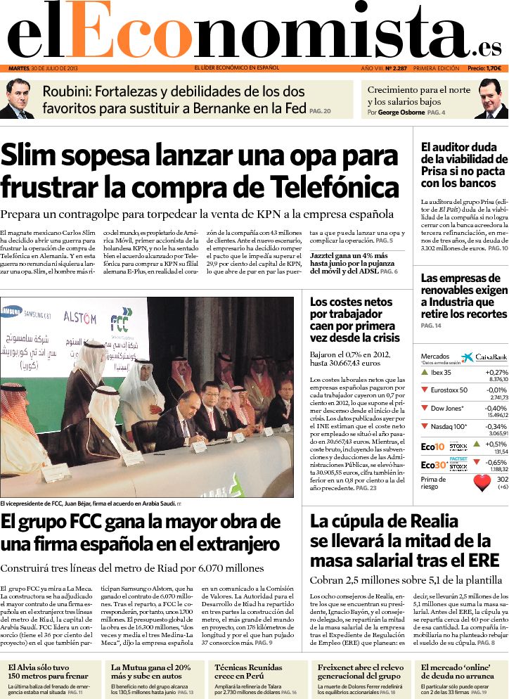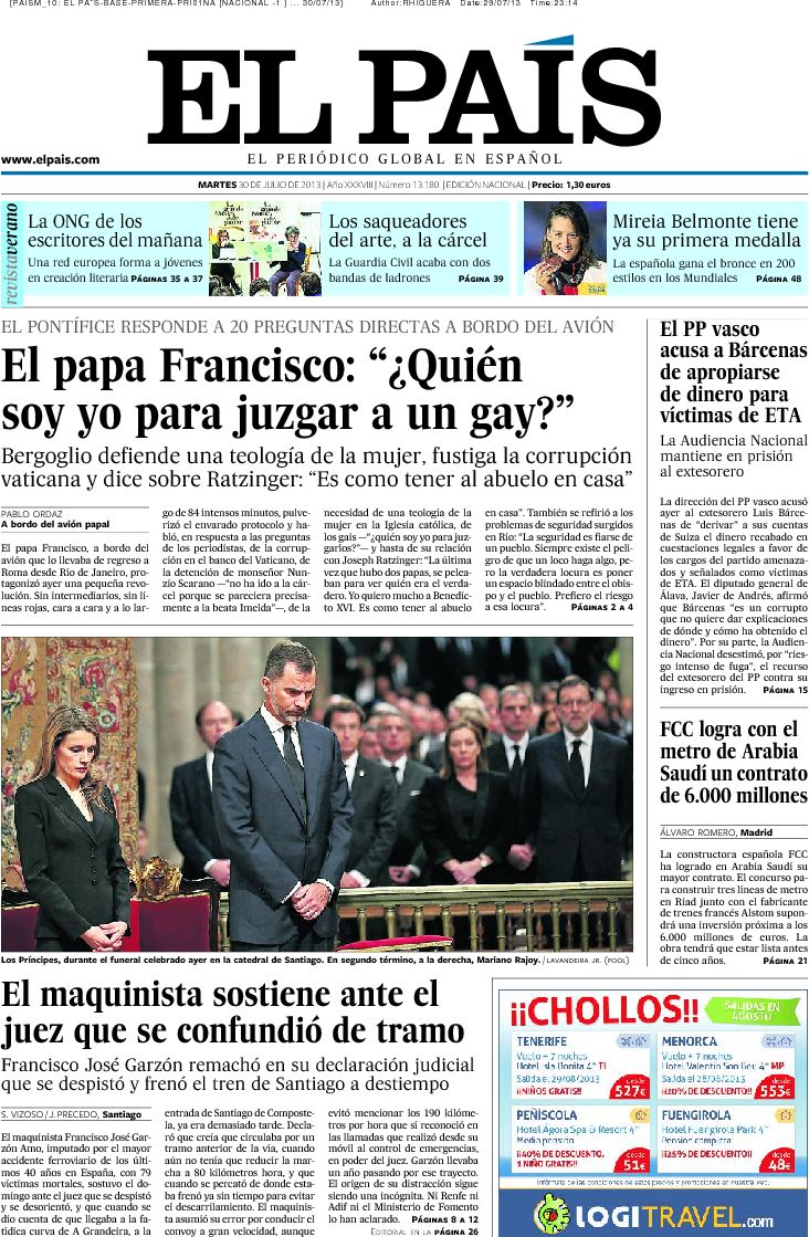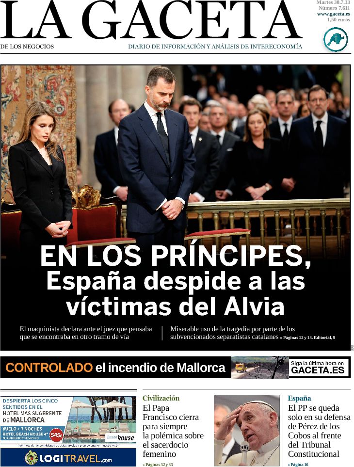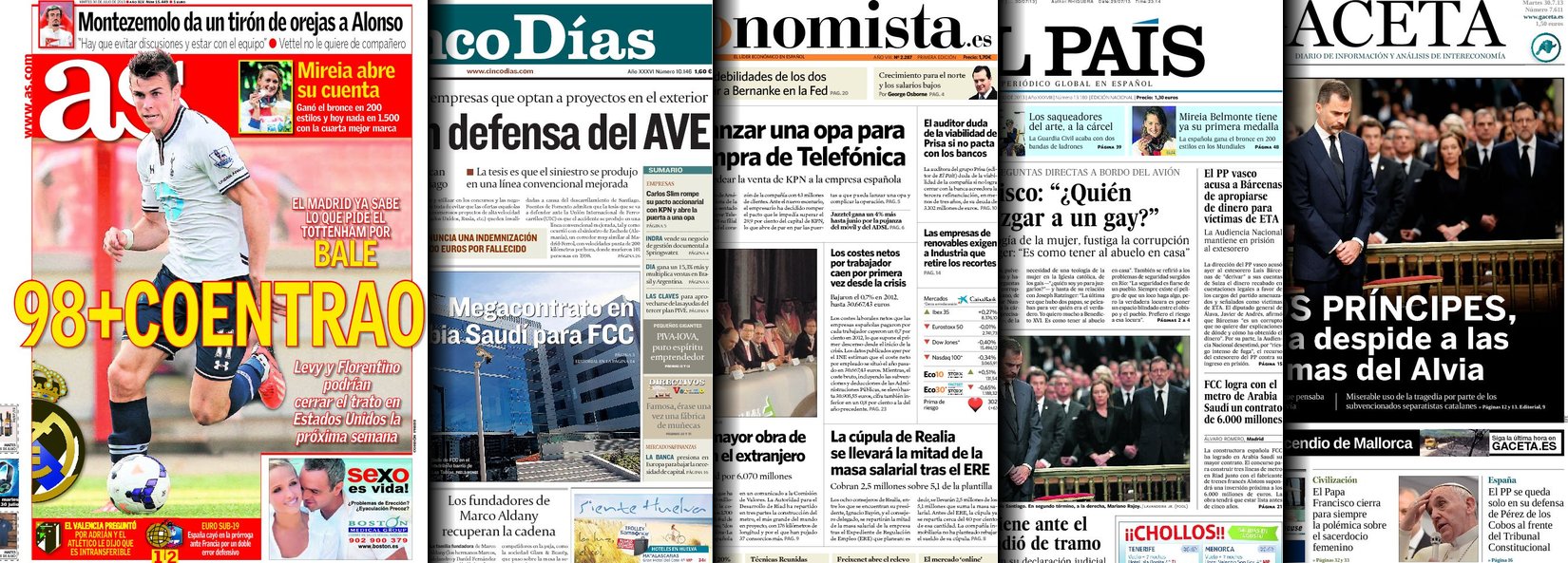 Portadas de los diarios El País, La Gaceta, ABC, As, Cinco Días, El Economista y La Vanguardia.