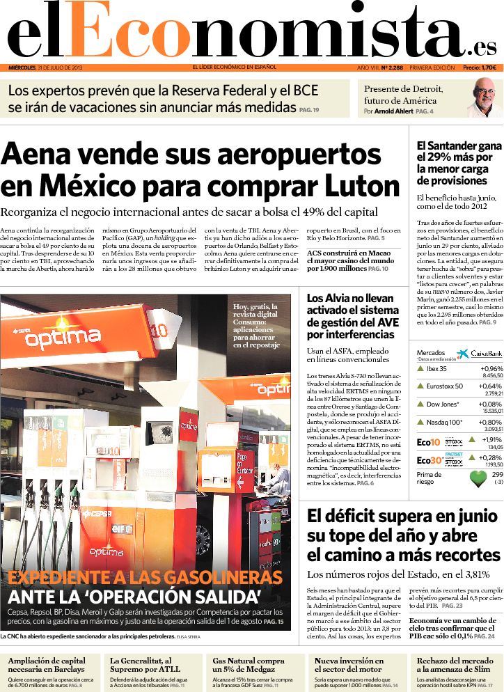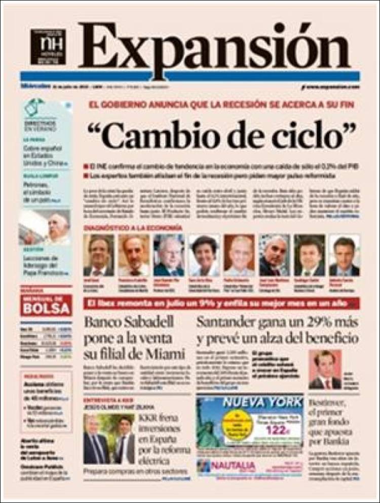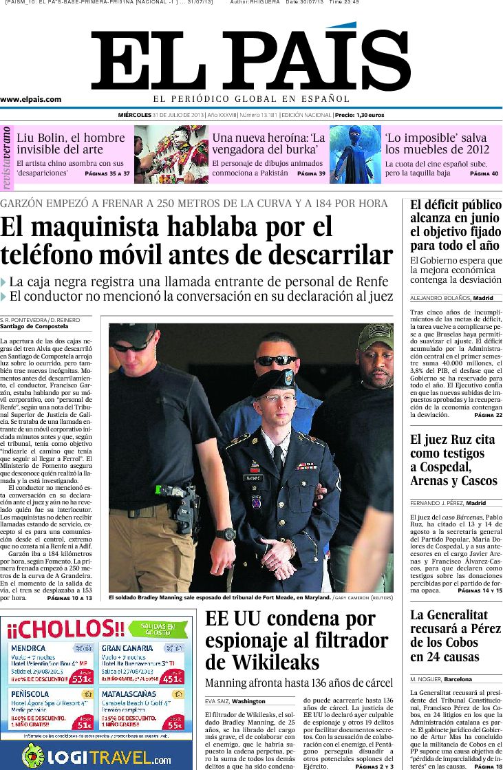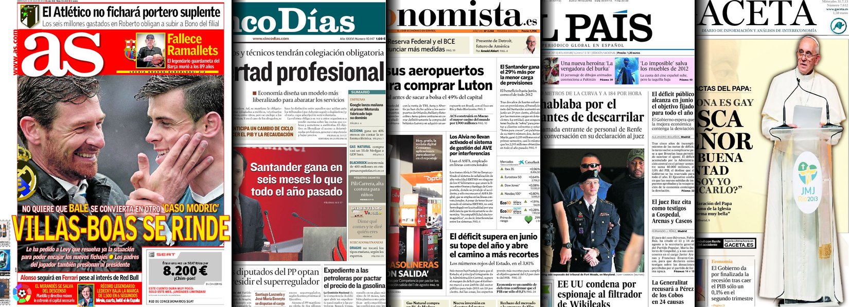 Portadas de los diarios El Mundo, El País, ABC, La Razón, La Gaceta, La Vanguardia, El Periódico, Expansión, el Economista, Cinco Días, As, Marca, Mundo Deportivo y Sport.