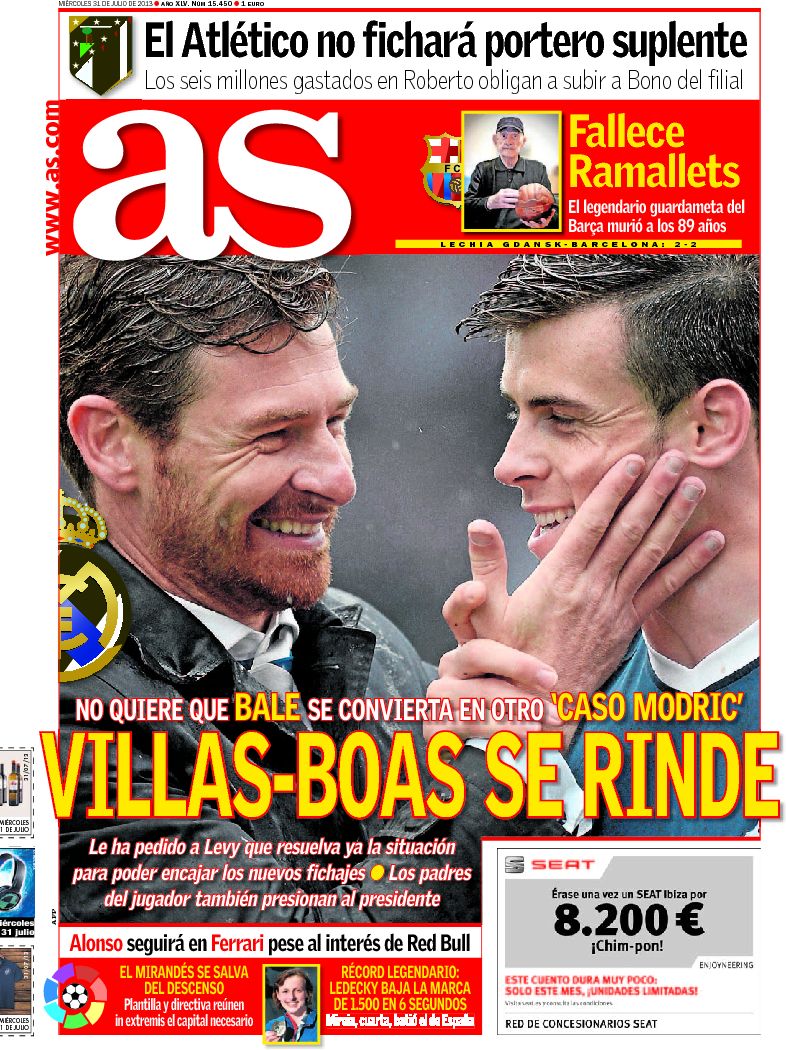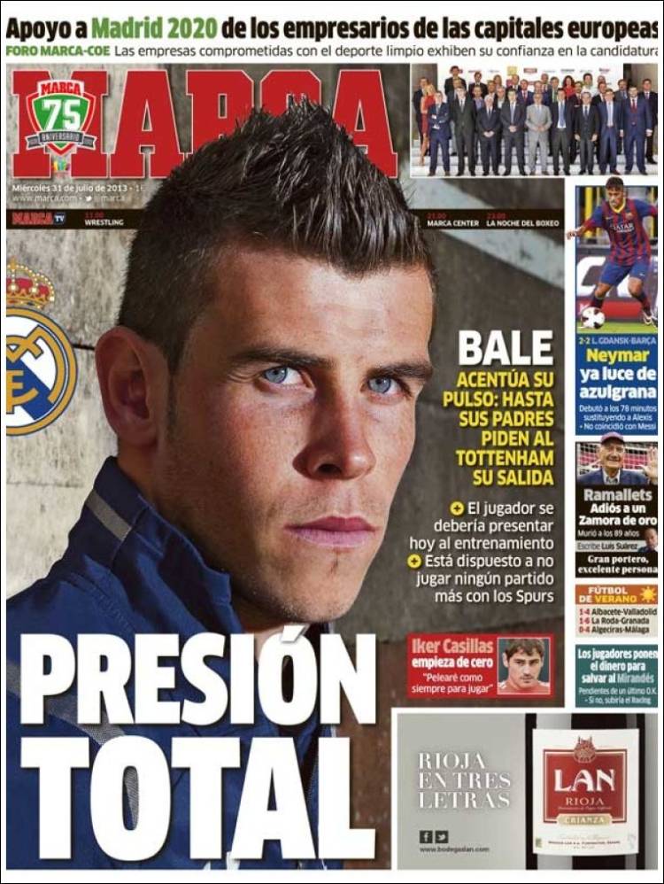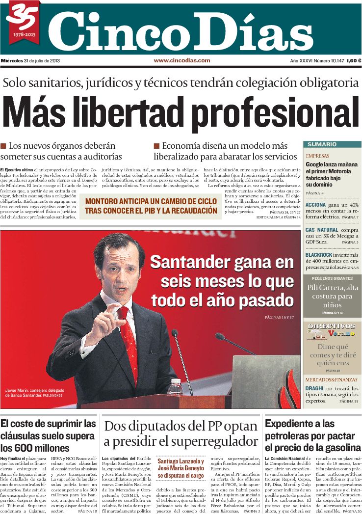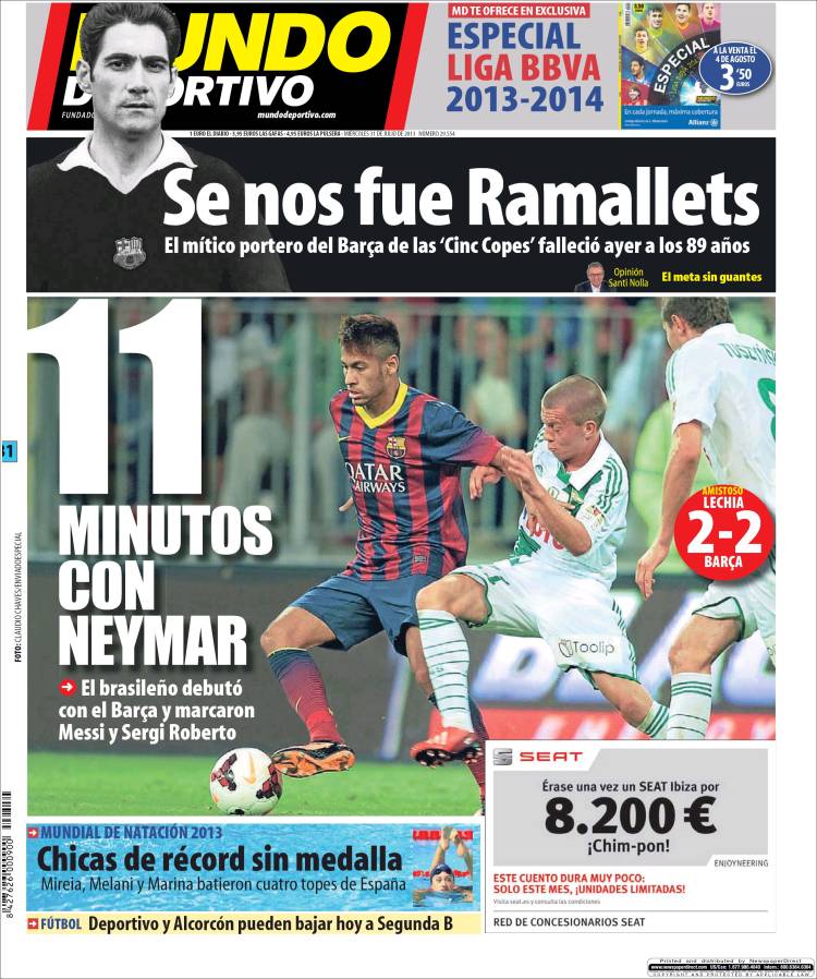 Portadas de los diarios El Mundo, El País, ABC, La Razón, La Gaceta, La Vanguardia, El Periódico, Expansión, el Economista, Cinco Días, As, Marca, Mundo Deportivo y Sport.