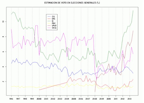 Evolución de los partidos minoritarios, con la subida de UPyD e IU