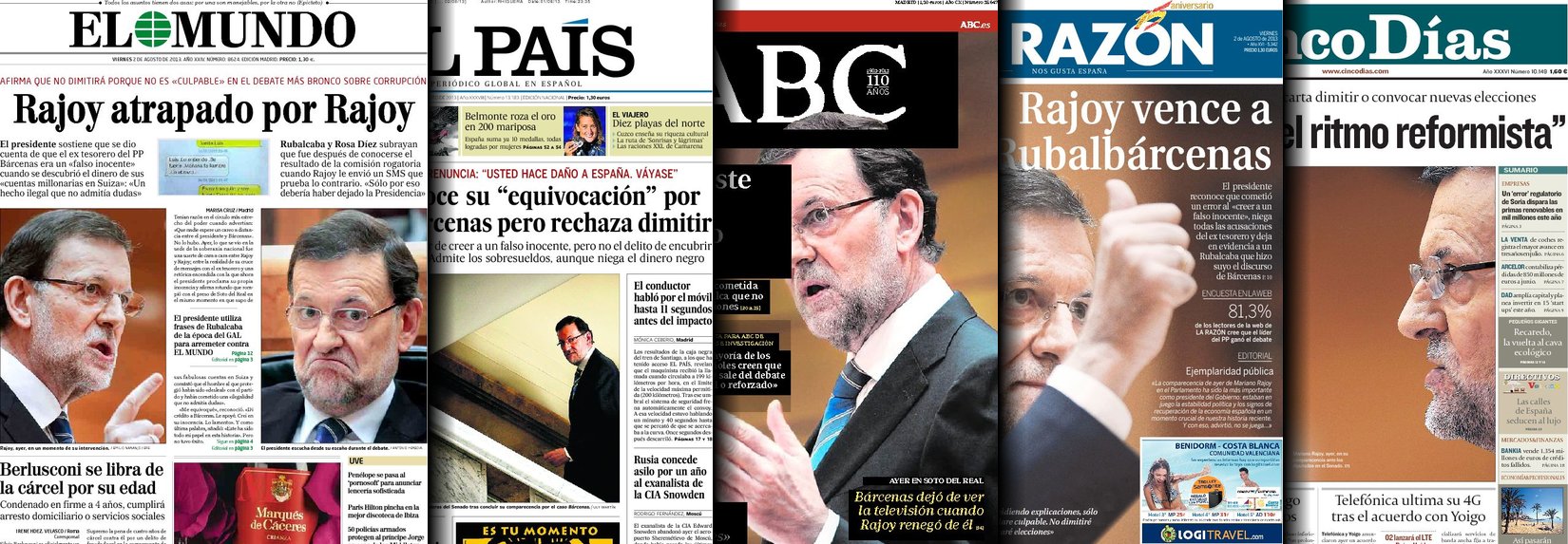 Portadas de los diarios El País, ABC, La Razón, As, Cinco Días, El Periódico, El Economista y La Vanguardia.