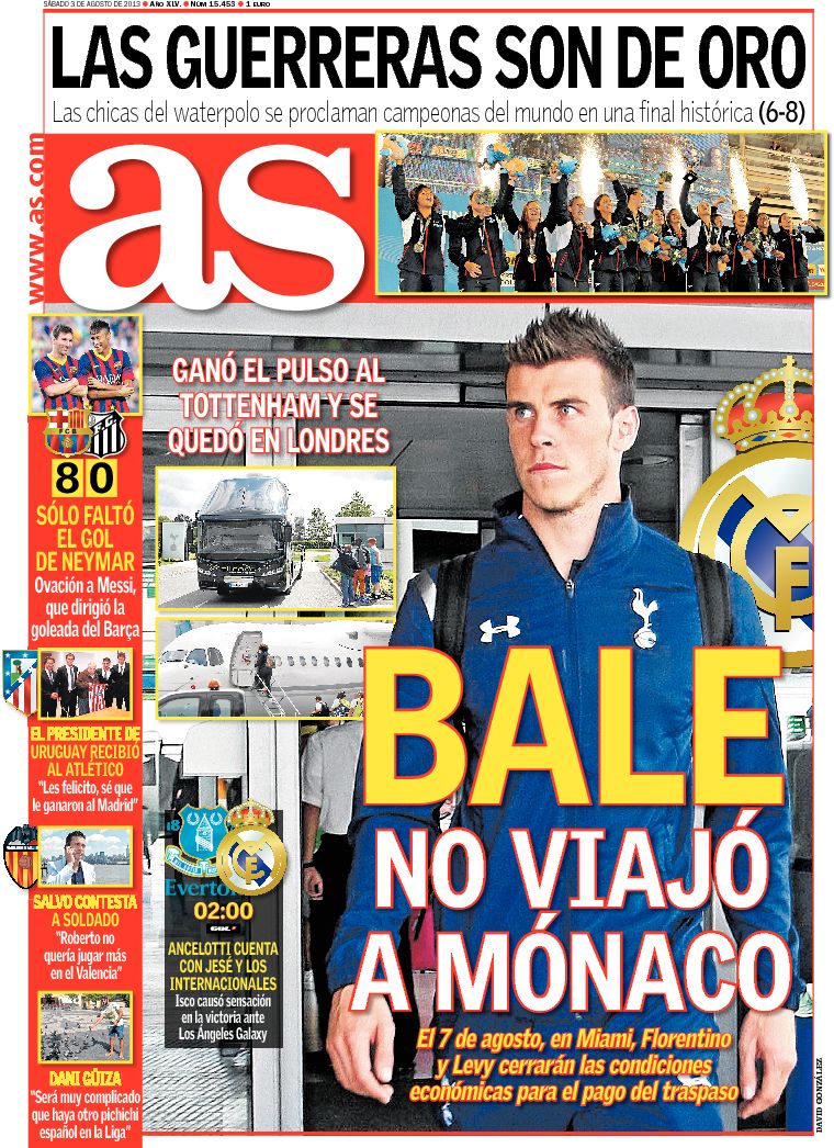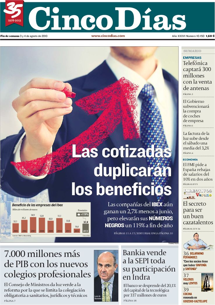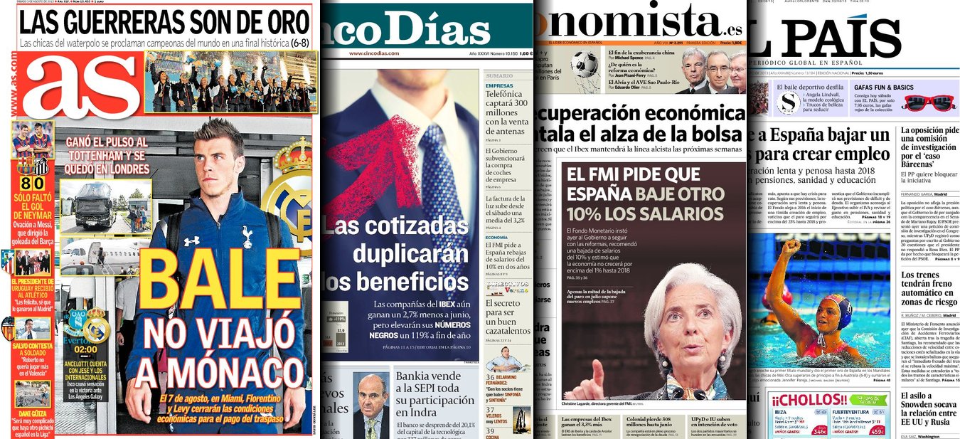 Portadas de los diarios El País, ABC, As, Cinco Días, El Economista y La Vanguardia.