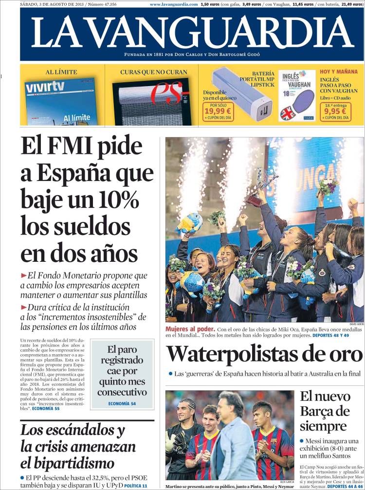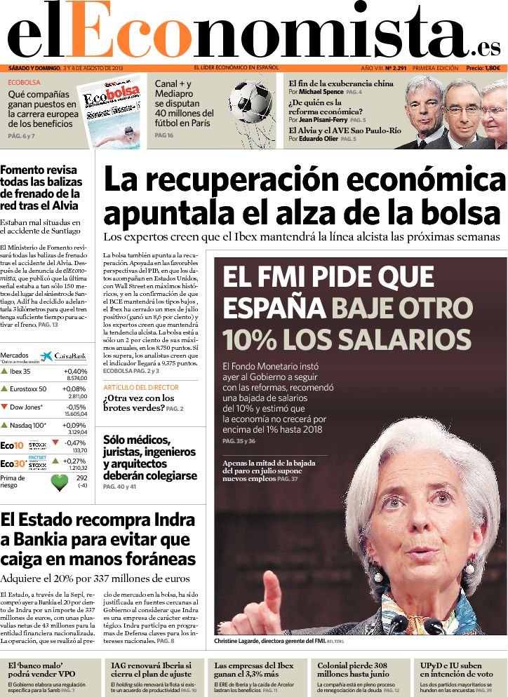 "El FMI pide a España que baje un 10% los sueldos en dos años"