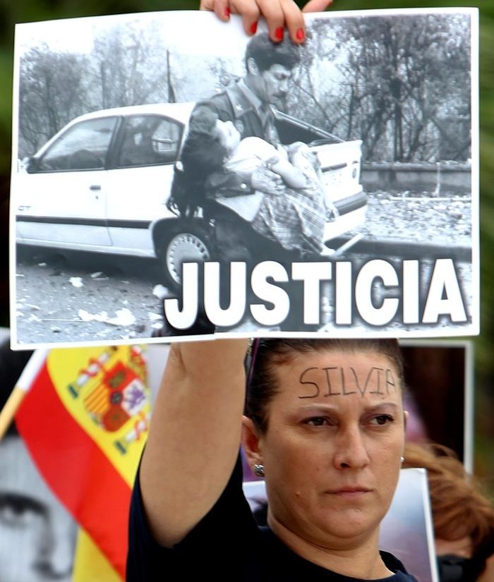 En el juicio por el asesinato de su hija, Toñi Santiago pedía entre lágrimas a la Justicia que su niña sea "la última asesinada por ETA". En aquel juicio, contra los etarras Andoni Otegi y Oscar Zelarain. Sin poder contener el llanto, Toñi Santiago ha pedido "por favor" que se haga "justicia con nuestra pequeña". "Dejo en sus manos que los asesinos no se vuelvan a cruzar con otra criatura.