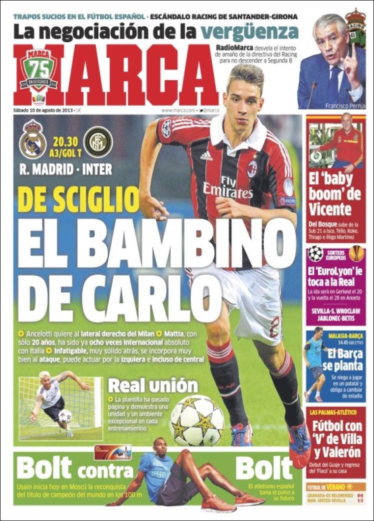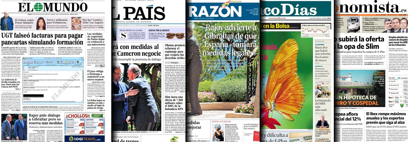 Portadas de los diarios El Mundo, El País, ABC, La Razón, La Gaceta, La Vanguardia, El Periódico, Expansión, el Economista, Cinco Días, Marca, As, Mundo Deportivo y Sport.