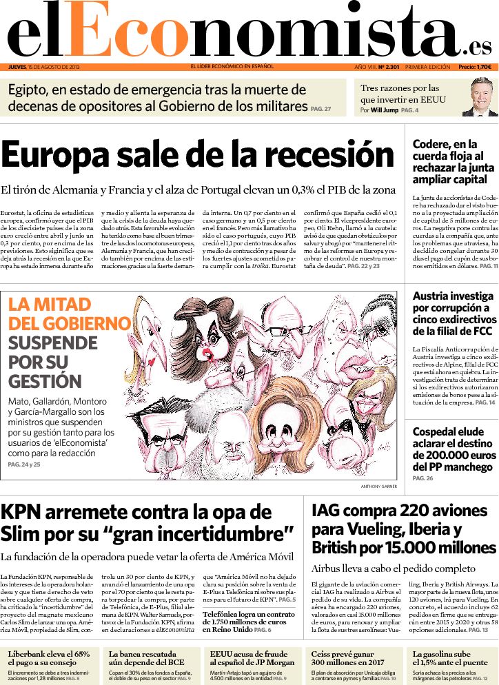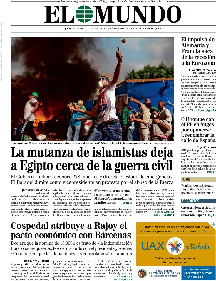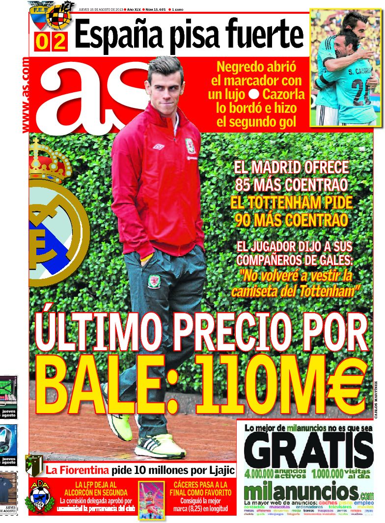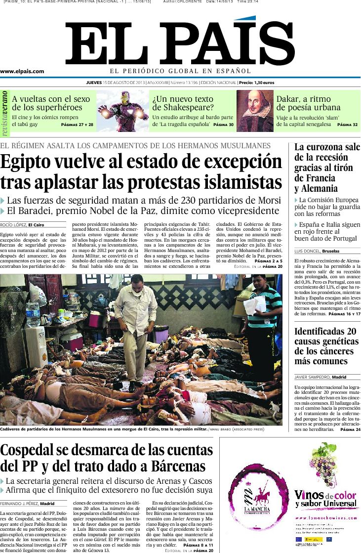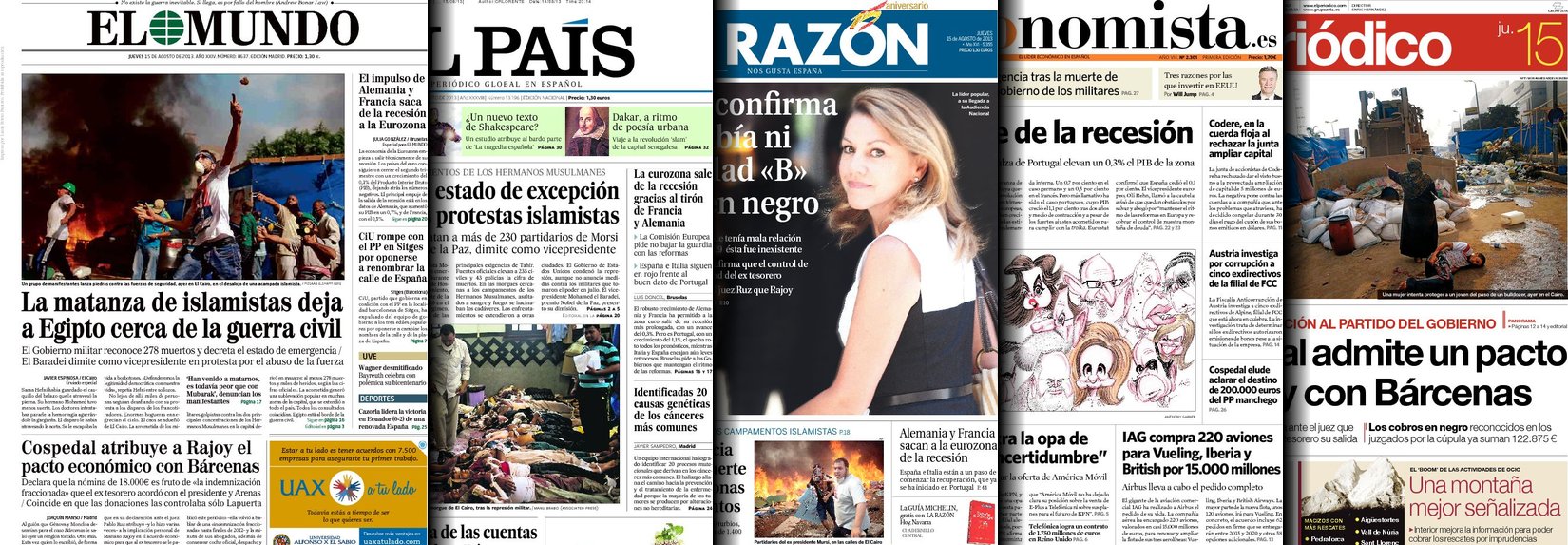 Portadas de los diarios El País, ABC, La Razón, As, El Periódico, El Economista y La Vanguardia.