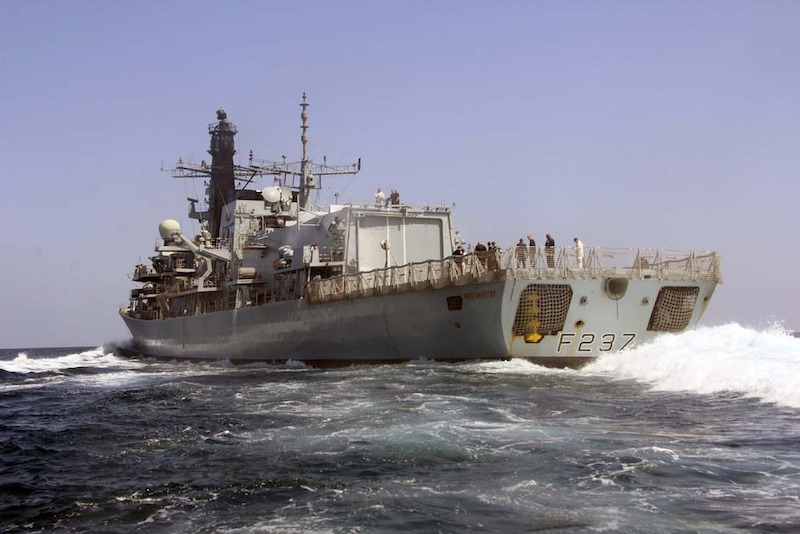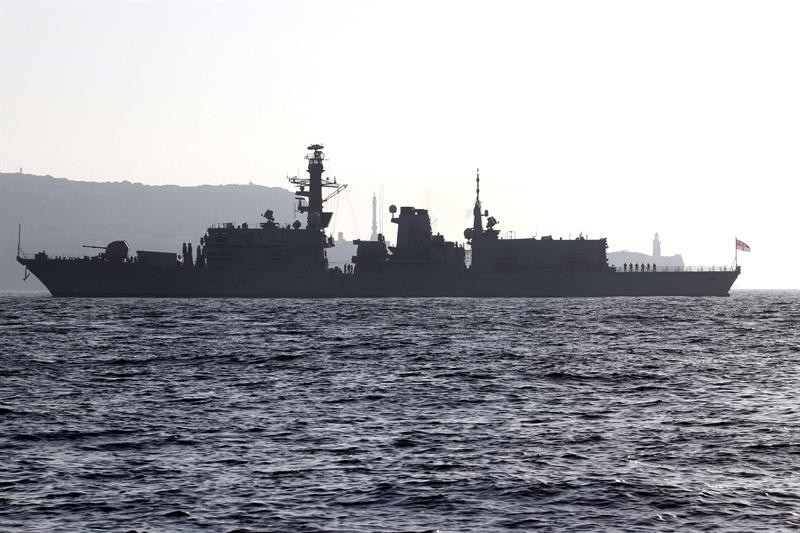 La fragrata británica HMS Westminster junto al portaaviones HMS Illustrious, durante su navegación rumbo a la bahía de Algeciras.