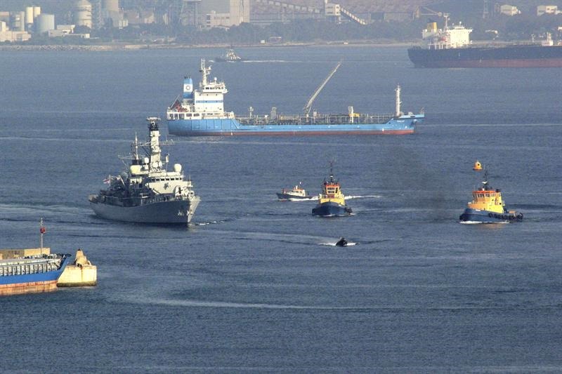 La fragata Westminster ha entrado en el puerto. Dos buques de apoyo la esperan en el exterior.