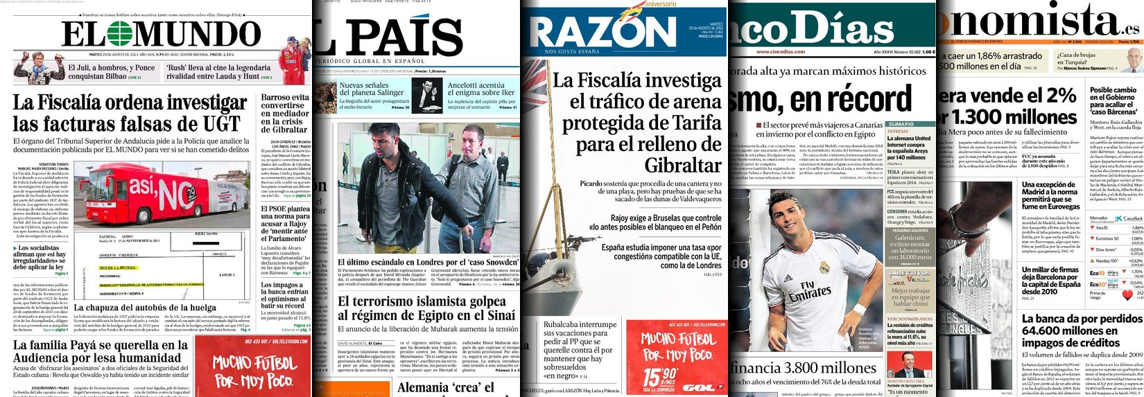 Portadas de los diarios El País, ABC, La Razón, As, Cinco Días, El Periódico, El Economista y La Vanguardia.