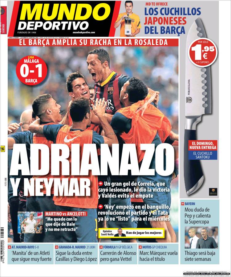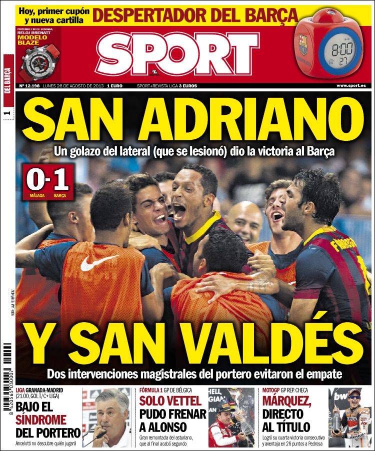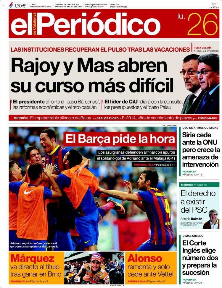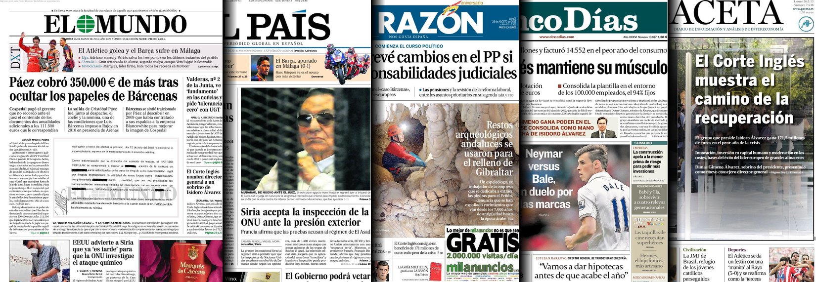 Portadas de los diarios El Mundo, El País, ABC, La Razón, La Vanguardia, La Gaceta, El Periódico, Cinco Días, El Economista, Expansión, Marca, As, Mundo Deportivo y Sport.