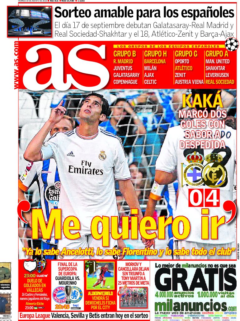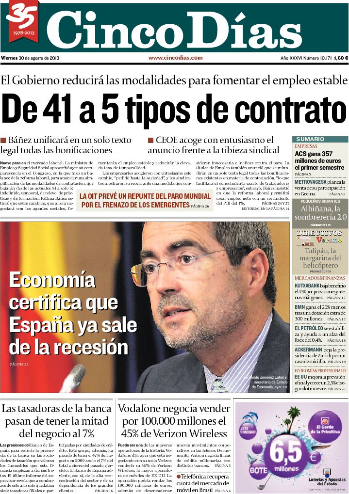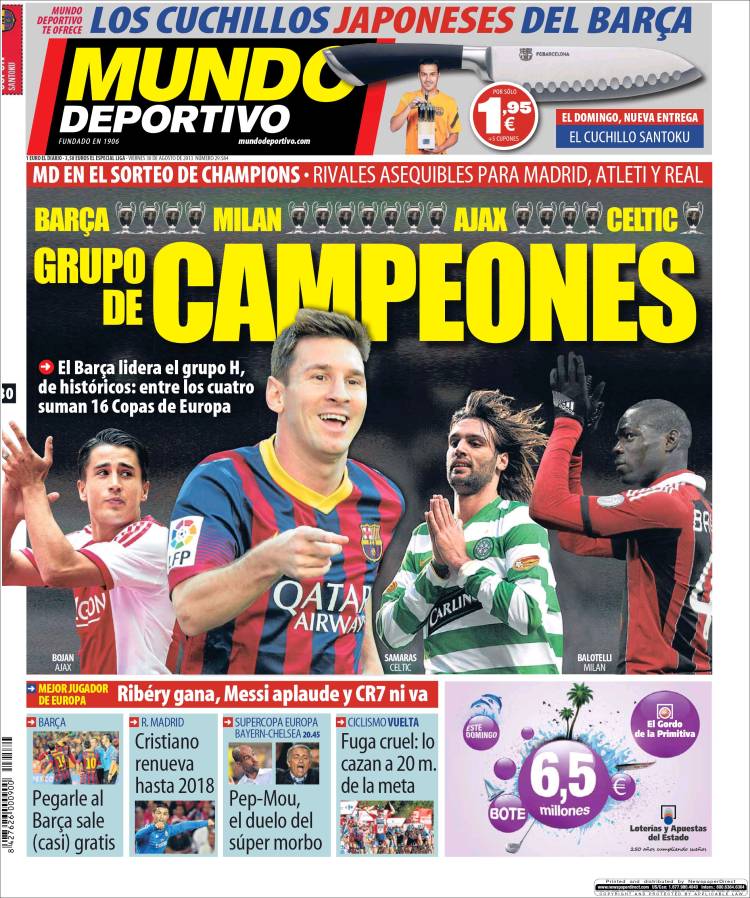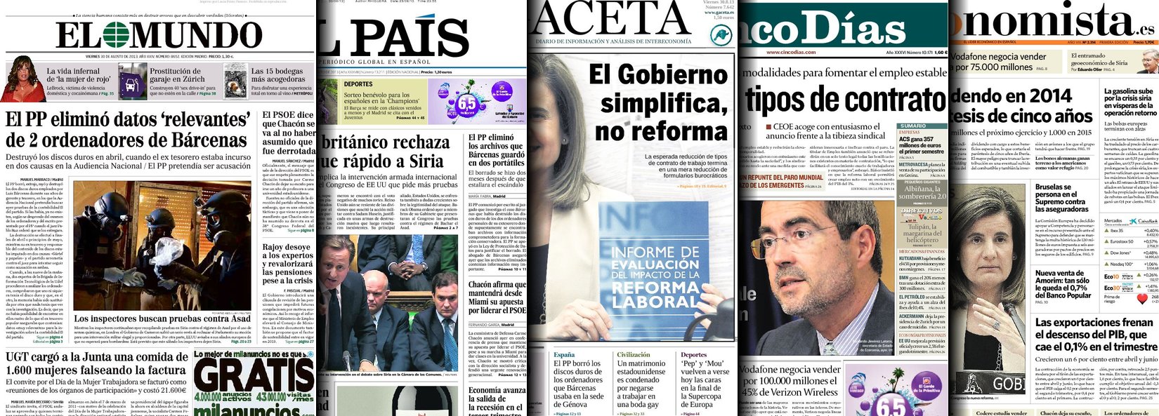 Portadas de los diarios El Mundo, El País, ABC, La Razón, La Vanguardia, La Gaceta, El Periódico, Cinco Días, El Economista, Expansión, Marca, As, Mundo Deportivo y Sport.