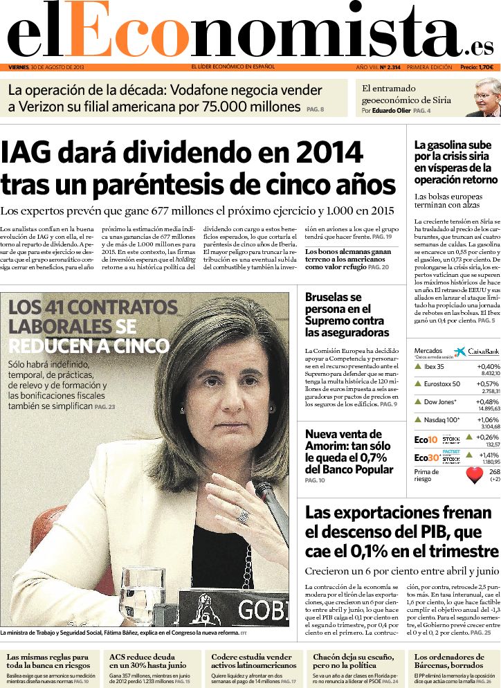 "IAG dará dividendo en 2014 tras un paréntesis de cinco años"