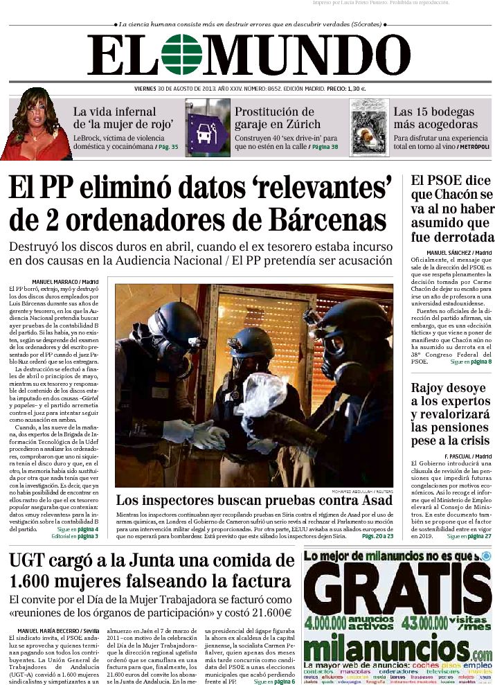 "El PP eliminó datos 'relevantes' de 2 ordenadores de Bárcenas"