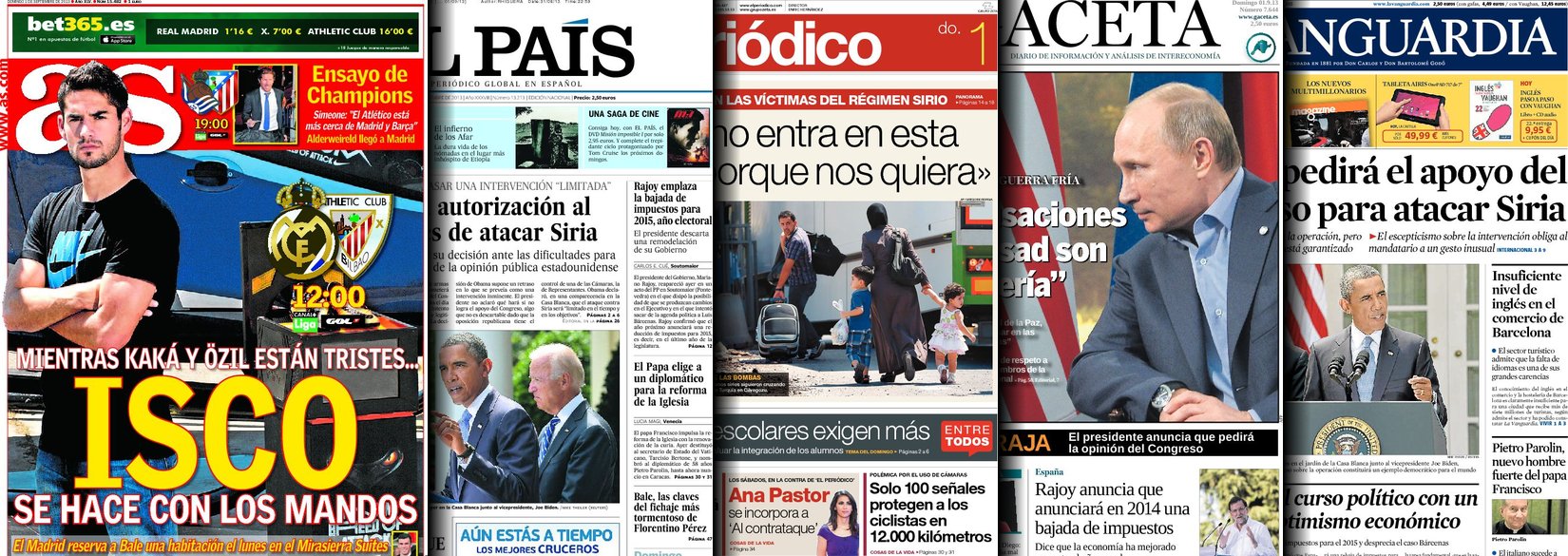 Portadas de los diarios El País, La Gaceta, ABC, As, El Periódico y La Vanguardia.