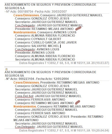 Pero como demuestran estos documentos en los años 2003 y 2004 y hasta 2007, el presidente de ASP era Antonio Retamino Megías, que ya era Tesorero de UGT Confederal en el equipo de Cándido Méndez, cargo que sigue ocupando en la actualidad.