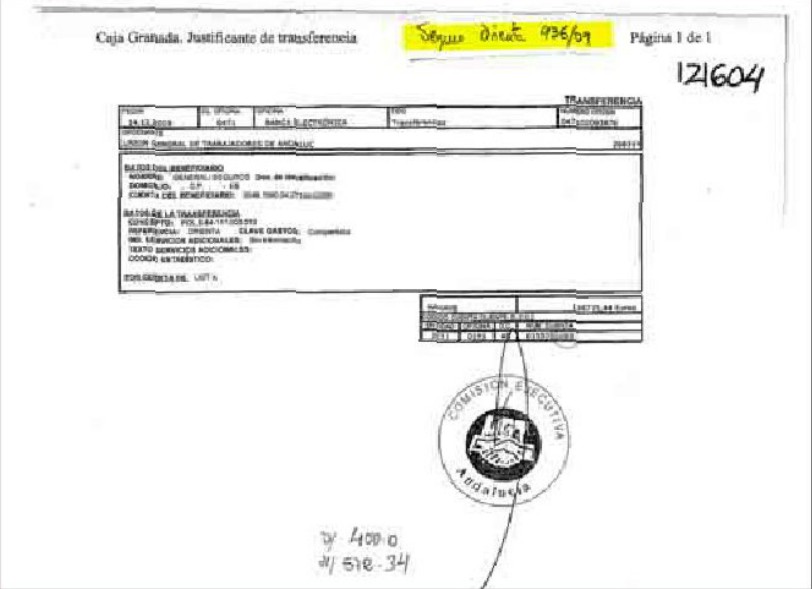 El Mundo muestra este martes extractos bancarios de los archivos contables de UGT que reflejan anotaciones manuscritas que corroboran que el pago se endosó al expediente 936/09, que es el que se identifica internamente con el programa Orienta. Incluso, según el mismo diario, la organización ugetista se quedaba con los rendimientos anuales generados por la póliza, que en 2010 superarían los 8.000 euros.