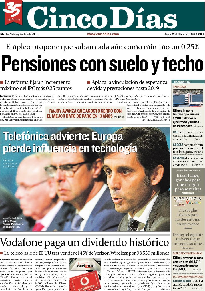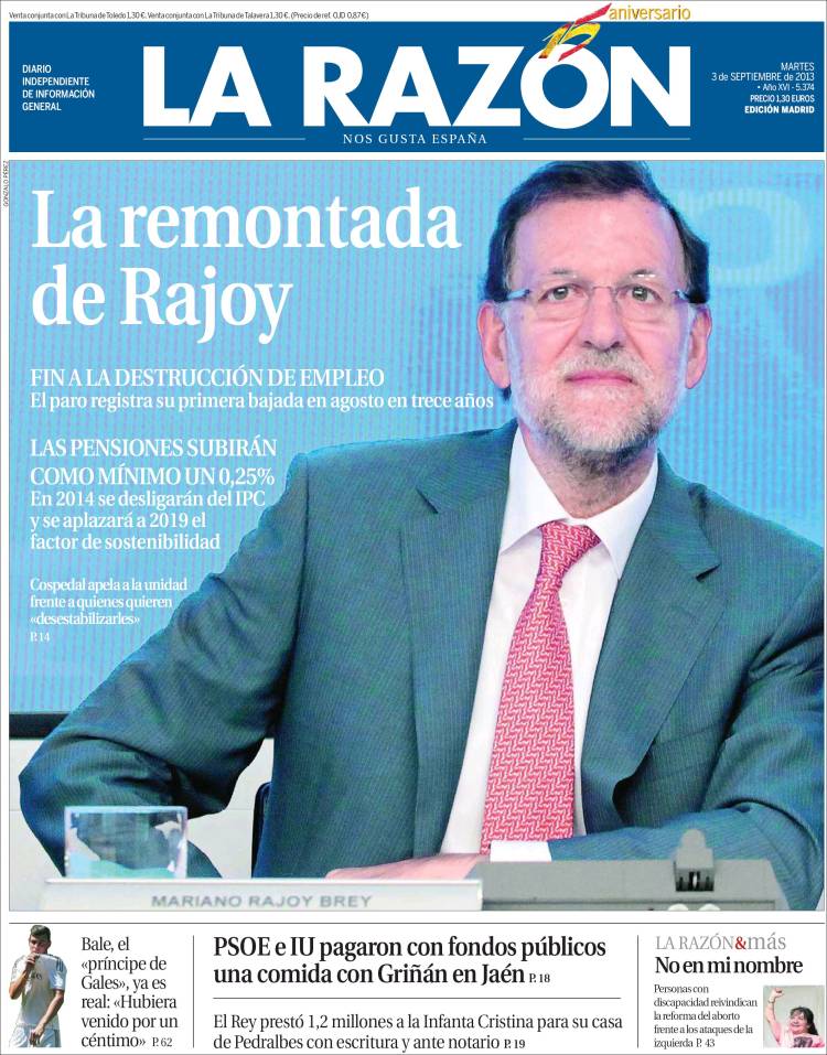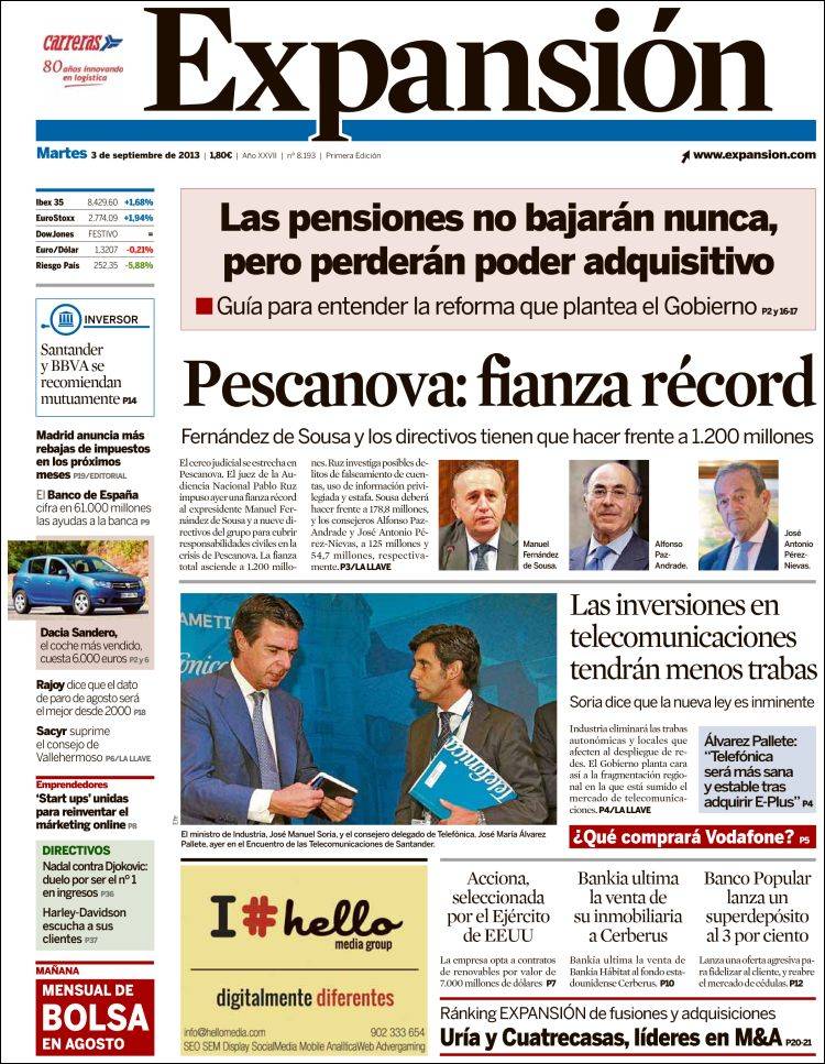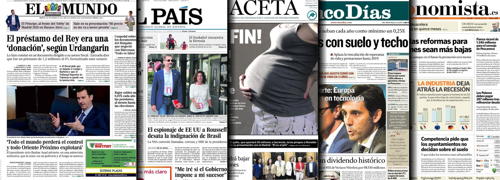 Portadas de los diarios El Mundo, El País, ABC, La Razón, La Vanguardia, La Gaceta, El Periódico, Cinco Días, El Economista, Expansión, Marca, As, Mundo Deportivo y Sport.