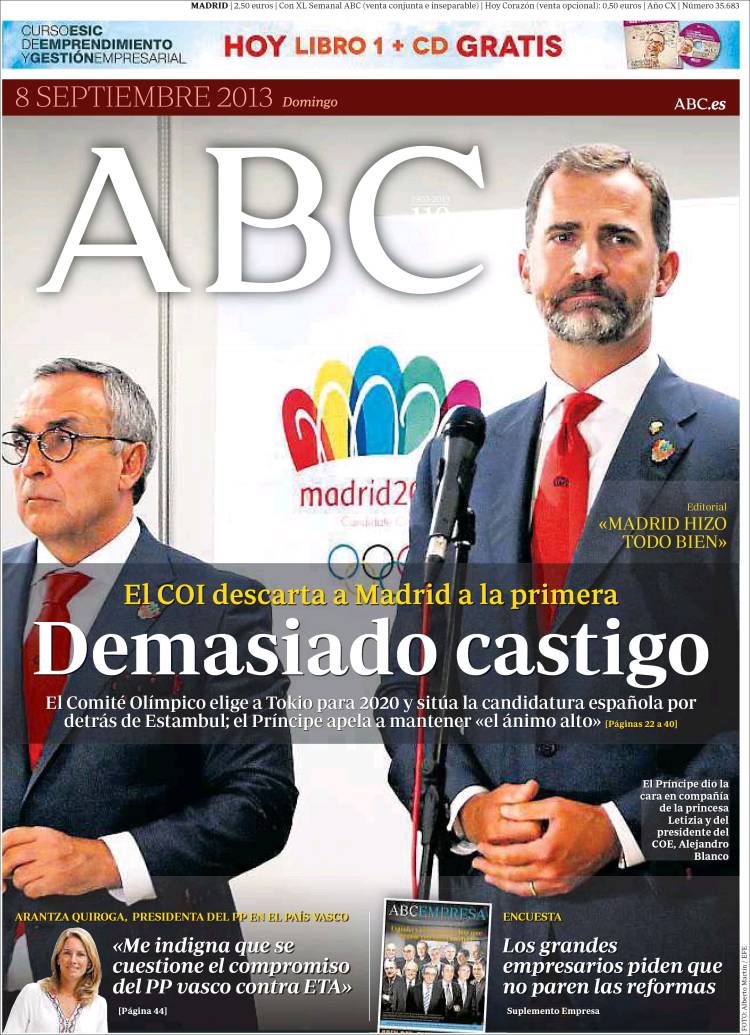 Portadas de los diarios El Mundo, El País, ABC, La Razón, La Gaceta, La Vanguardia, El Periódico, Marca, As, Mundo Deportivo y Sport.