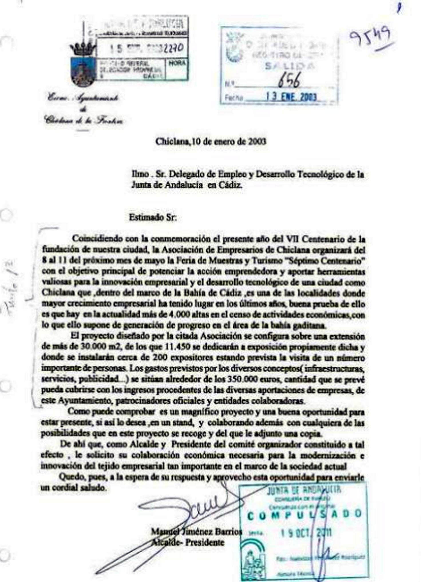 Esta misiva de petición de fondos estaba dirigida al entonces delegado provincial de Empleo y Desarrollo Tecnológico de la Junta, el imputado por Alaya, Agustín Barberá.