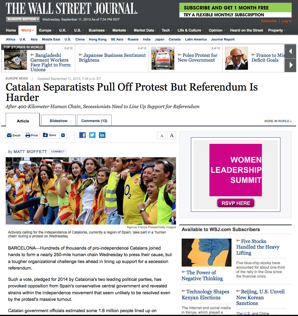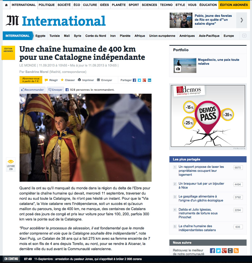 La Diada en la prensa internacional