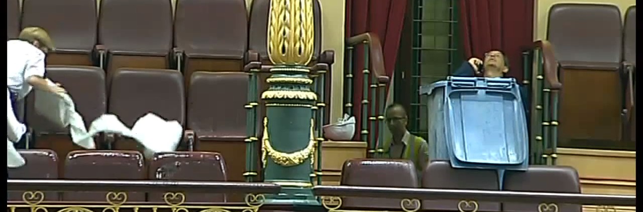 El arranque del curso parlamentario con la primera sesión de control al Gobierno no pudo ser más movida. Coincidió con un fuerte aguacero que cayó sobre la capital de España y dejó al descubierto algunas deficiencias en las obras de mantenimiento del hemiciclo. Jesús Posada, presidente de la Cámara, se vio obligado a suspender temporalmente la sesión al comprobar cómo el agua se filtraba por el techo y caía a chorros sobre la tribuna de prensa.
