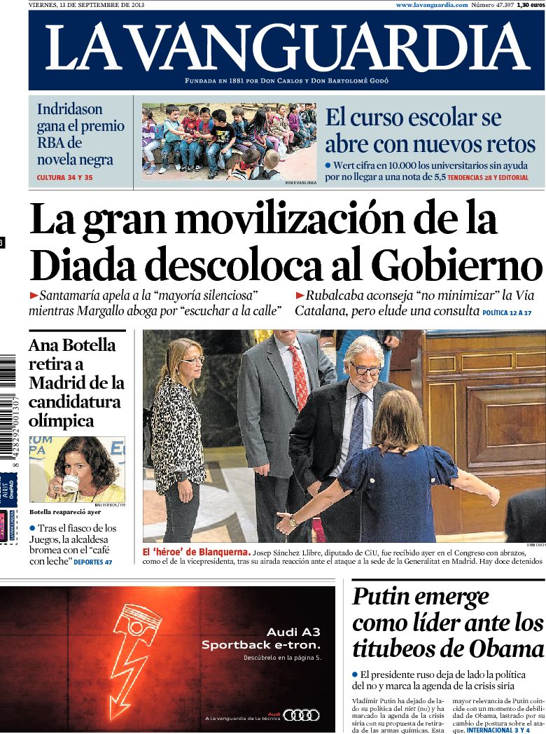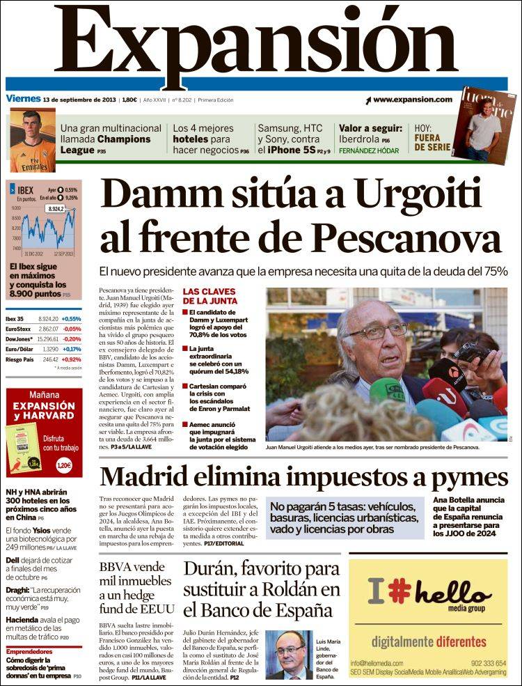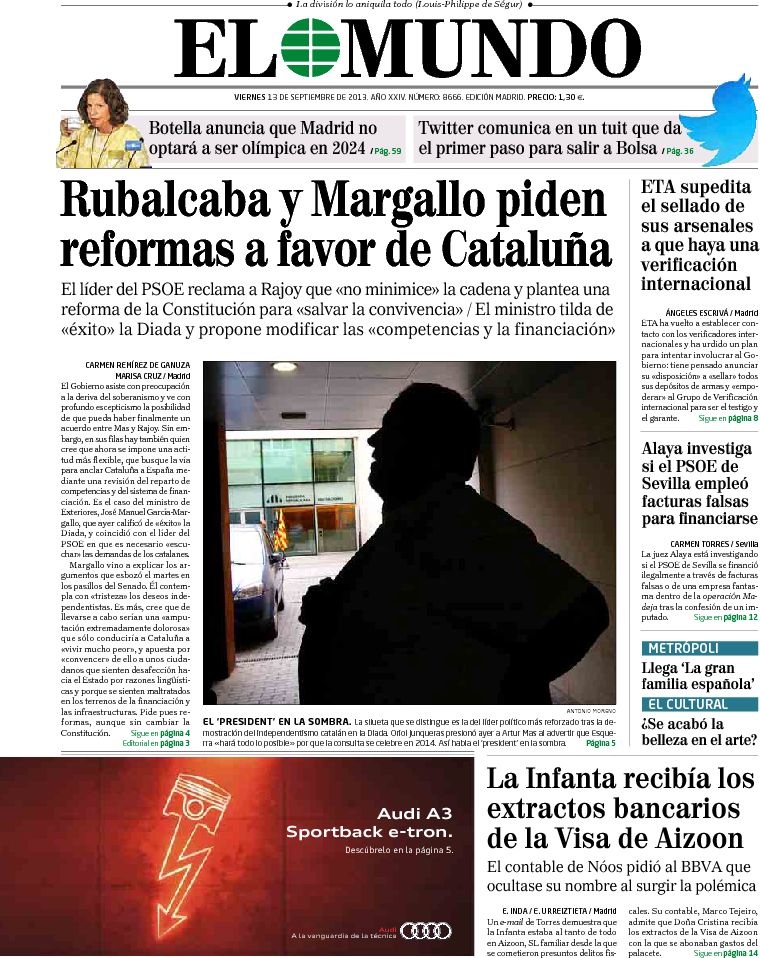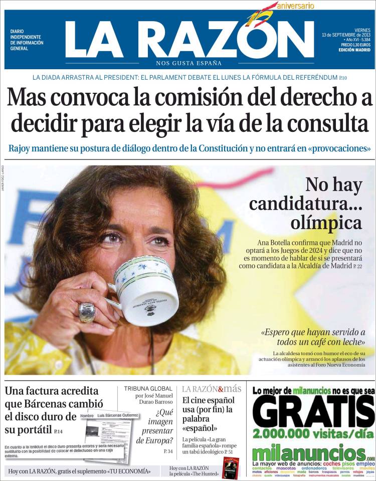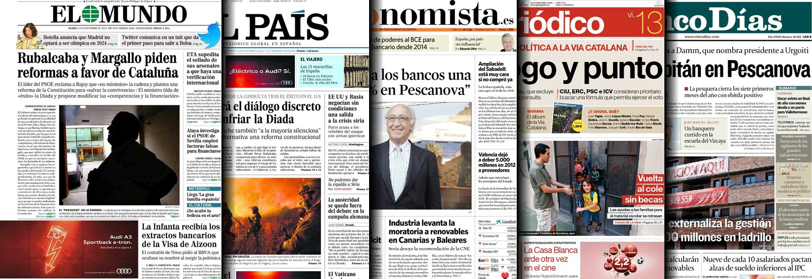 Portadas de los diarios El Mundo, El País, ABC, La Razón, La Vanguardia, La Gaceta, El Periódico, Cinco Días, El Economista, Expansión, Marca, As, Mundo Deportivo y Sport.