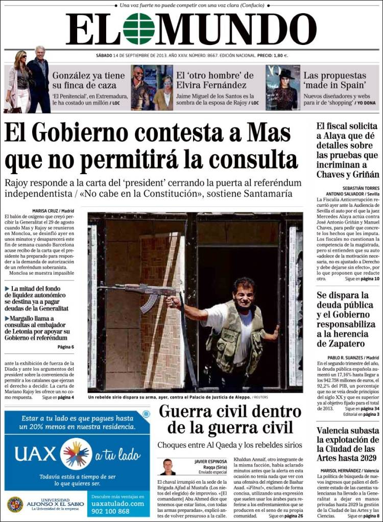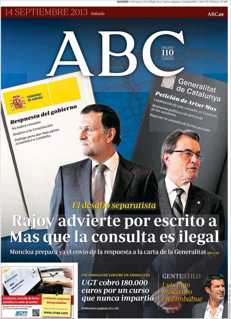 "Rajoy advierte por escrito a Mas que la consulta es ilegal"