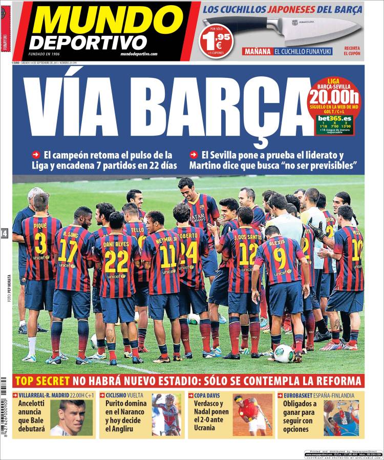 Portadas de los diarios El Mundo, El País, ABC, La Razón, La Gaceta, La Vanguardia, El Periódico, Expansión, el Economista, Marca, As, Mundo Deportivo y Sport.