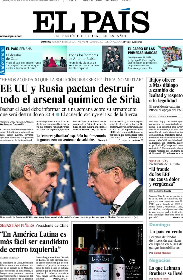 "EEUU y Rusia pactan destruir todo el arsenal químico de Siria"
