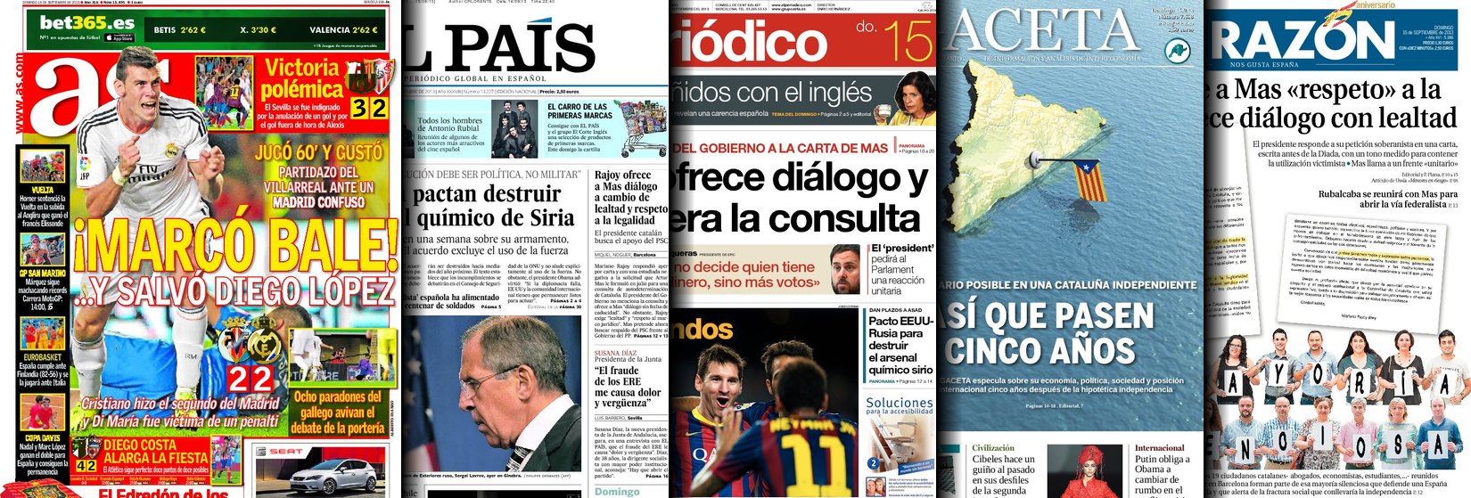 Portadas de los diarios El Mundo, El País, ABC, La Razón, La Gaceta, La Vanguardia, El Periódico, Marca, As, Mundo Deportivo y Sport.