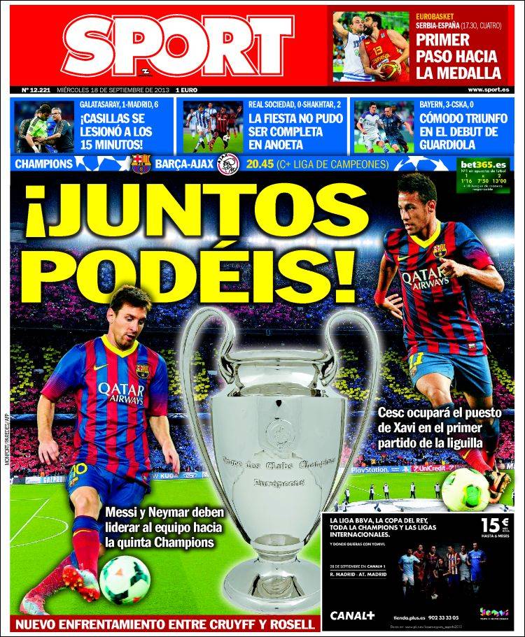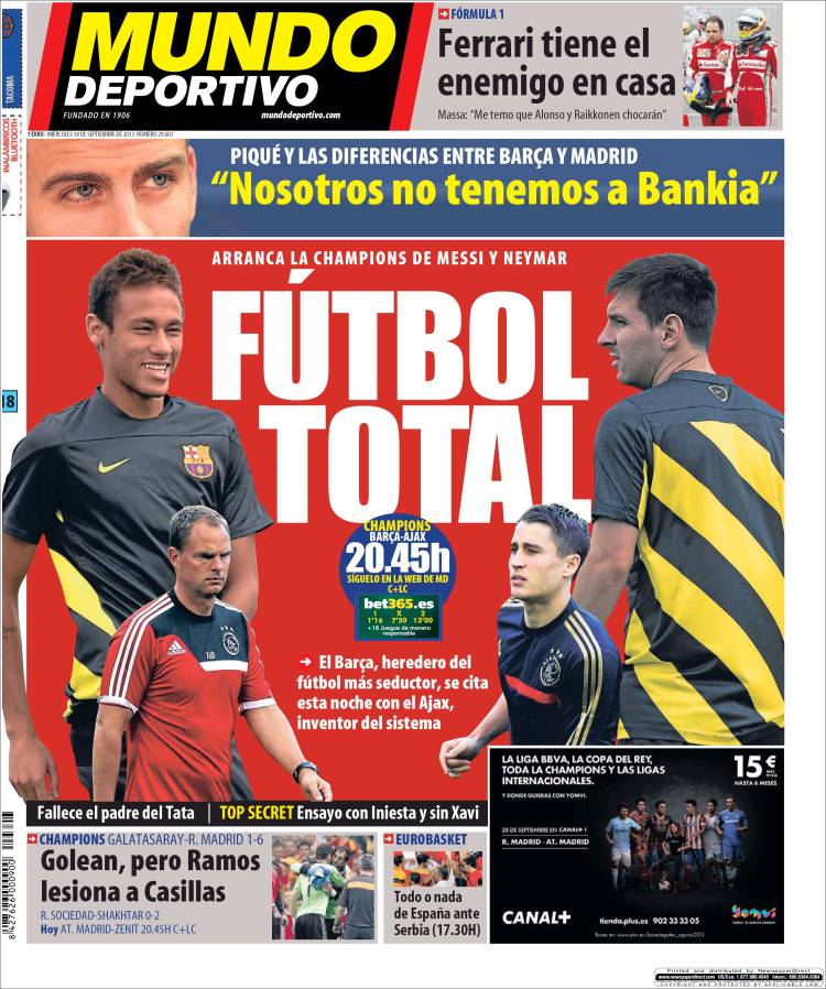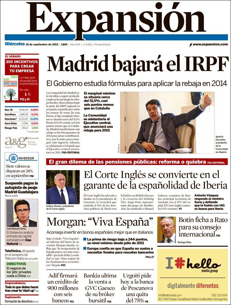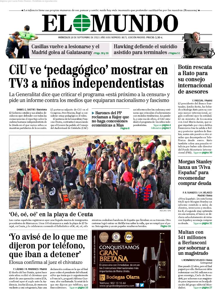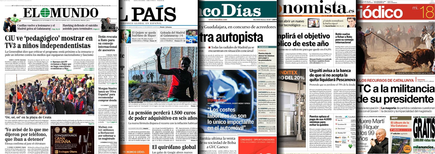 Portadas de los diarios El Mundo, El País, ABC, La Razón, La Vanguardia, La Gaceta, El Periódico, Cinco Días, El Economista, Expansión, Marca, As, Mundo Deportivo y Sport.
