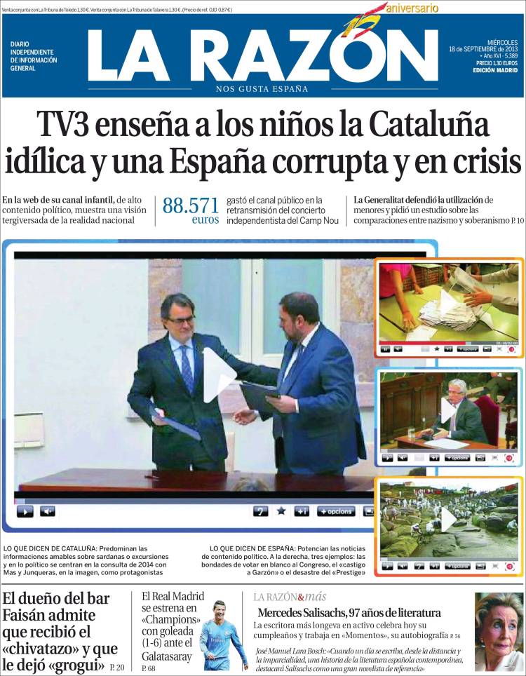 "TV3 enseña a los niños la Cataluña idílica y una España corrupta y en crisis"