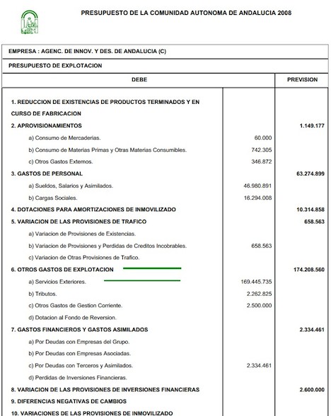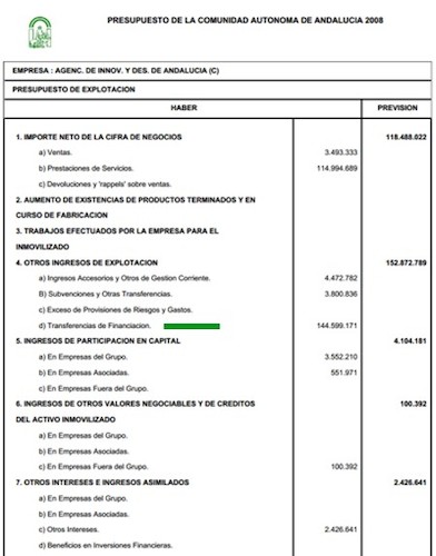 Naturalmente, todo este procedimiento no era visible para los diputados del Parlamento andaluz que votaban el Presupuesto. ¿O es que todos ellos sabían pro advertencia previa de la Junta que los dineros transferidos al IFA y luego a la Agencia IDEA iban a usarse de este modo? Lo que aparece en los Presupuestos Generales de la Junta, en su libro esencial, es lo siguiente: