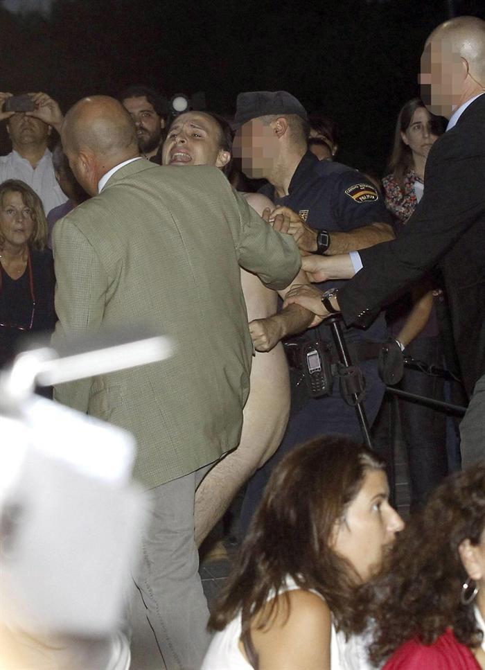 Inmediatamente fue arrestado por los agentes del Cuerpo Nacional de Policía que custodiaban el lugar. Tras ser apartado de la zona fue detenido y conducido a comisaría por un coche policial. El exhibicionista portaba una mochila que posteriormente fue inspeccionada por un perro especializado en explosivos, sin que se encontrara nada sospechoso.